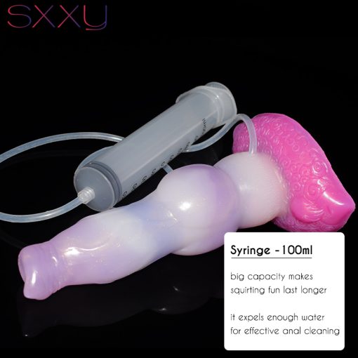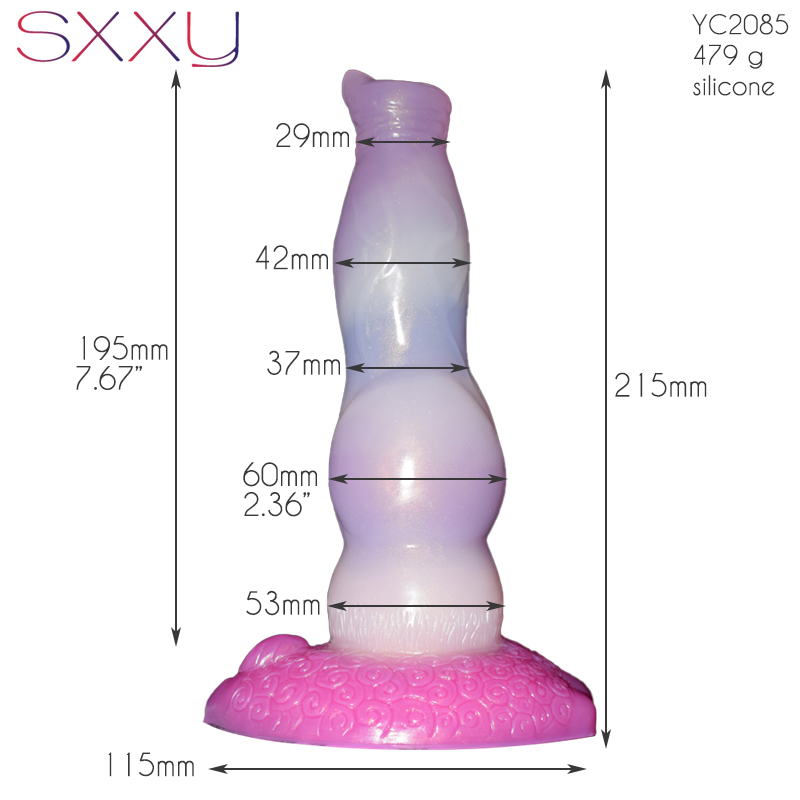 Um produto com tamanho de cumprimento médio-grande e com grossura grande de 6 cm de diâmetro. Seu formato se assemelha com com o pênis de cachorro. Possui passagem para bombear fluidos através de seringas ou com a opção de um bulbo pera, O que pode simular grandes “gozadas” nos momentos de clímax.