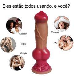 Dildos de silicone parecidos com pênis de cão, com simulação de pontas grossas e grande musculatura na base do pênis. Ideais para práticas de dilatação anal, masturbação e fantasias ou fetiches. Todos possuem uma textura lisa que vai facilitar a penetração. Utilize com lubrificantes corporais.