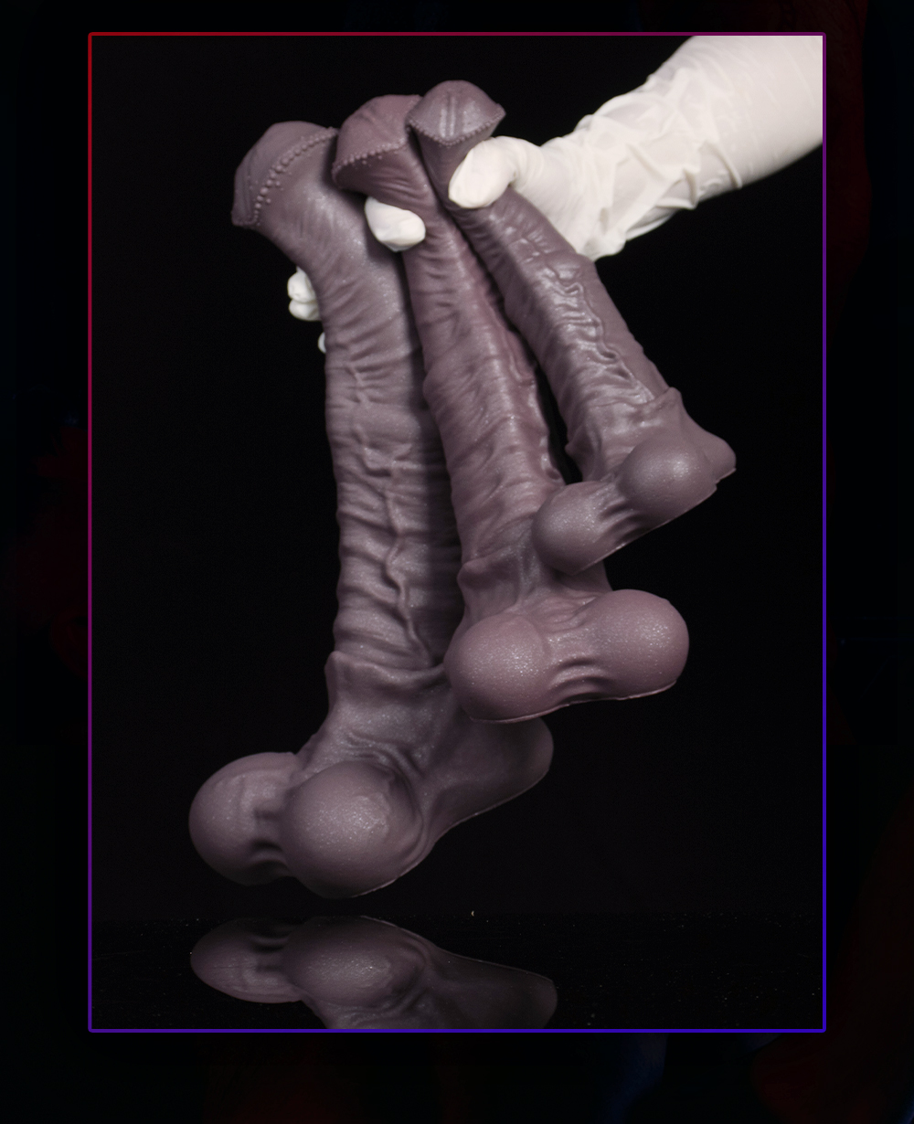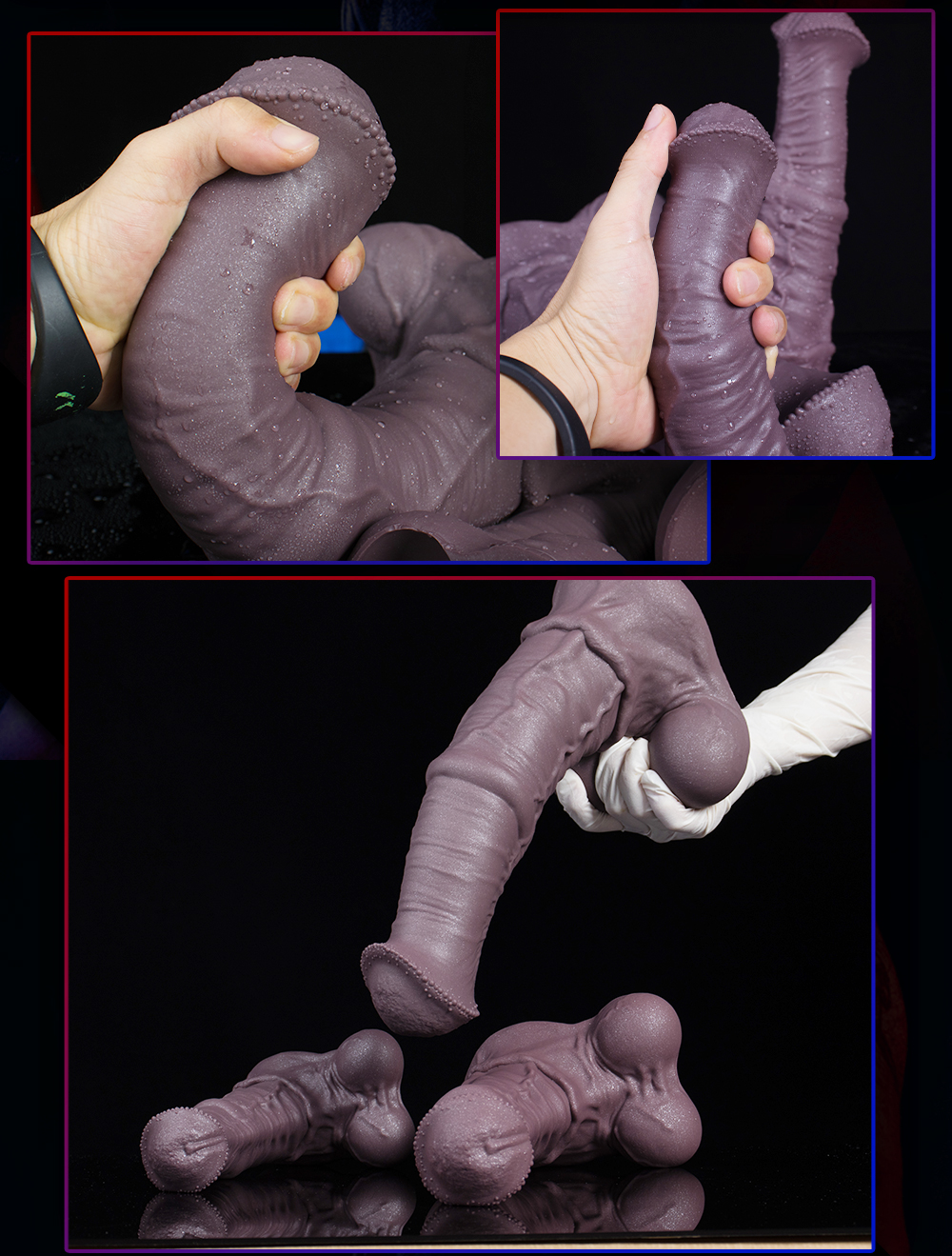 Grossura que varia de 3,5 cm até 8,3 cm de diâmetro para os segmentos ao longo dos dildos. Os formatos são idênticos e mudam apenas o comprimento. Todos os modelos possuem glande grossa e texturas com simulação de veias na superfície. Os modelos também podem ter partes arredondadas ou partes anelares ao longo do pênis de silicone. Não se esqueça dos grandes testículos na base dos dildos.