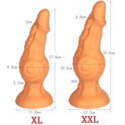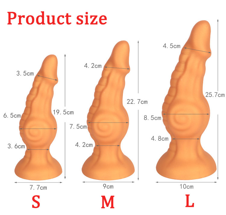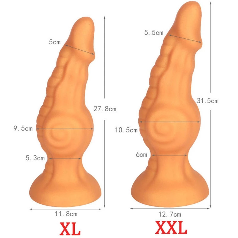 Os tamanhos do produto variam nas suas alturas e começam em 19,5 cm, 22,7 cm, 25,7 cm, 27,8 cm e 31,5 cm de altura. As grossuras para a glande são 3,5 cm, 4,2 cm, 4,5 cm, 5 cm e 5,5 cm de grossura. As partes arredondadas antes da base têm 6,5 cm, 7,5 cm, 8,5 cm, 9,5 cm e 10,5 cm de grossura.