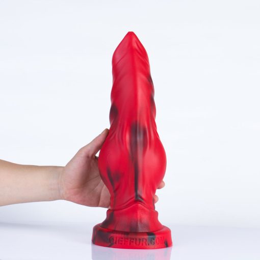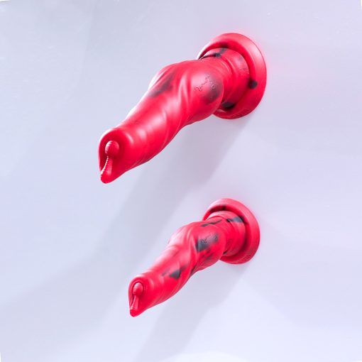 Dildos de silicone parecidos com pênis de cão, com pontas finas e grande musculatura na base do pênis. Ideais para práticas de dilatação anal, masturbação e fantasias ou fetiches. Todos possuem uma textura lisa que vai facilitar a penetração. Utilize com lubrificantes corporais.