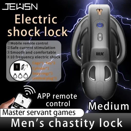 Dispositivo de Castidade Choque Jeusn Electric Shock Chastity Lock: Explore uma nova dimensão de submissão e controle com esse dispositivo exclusivo que combina o tradicional bloqueio da castidade com a inovação de pulsos elétricos ajustáveis, proporcionando uma experiência intensa e desafiadora.