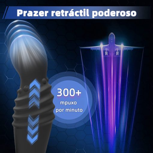 Vibrador com função telescópica controlável manualmente ou por controle remoto.