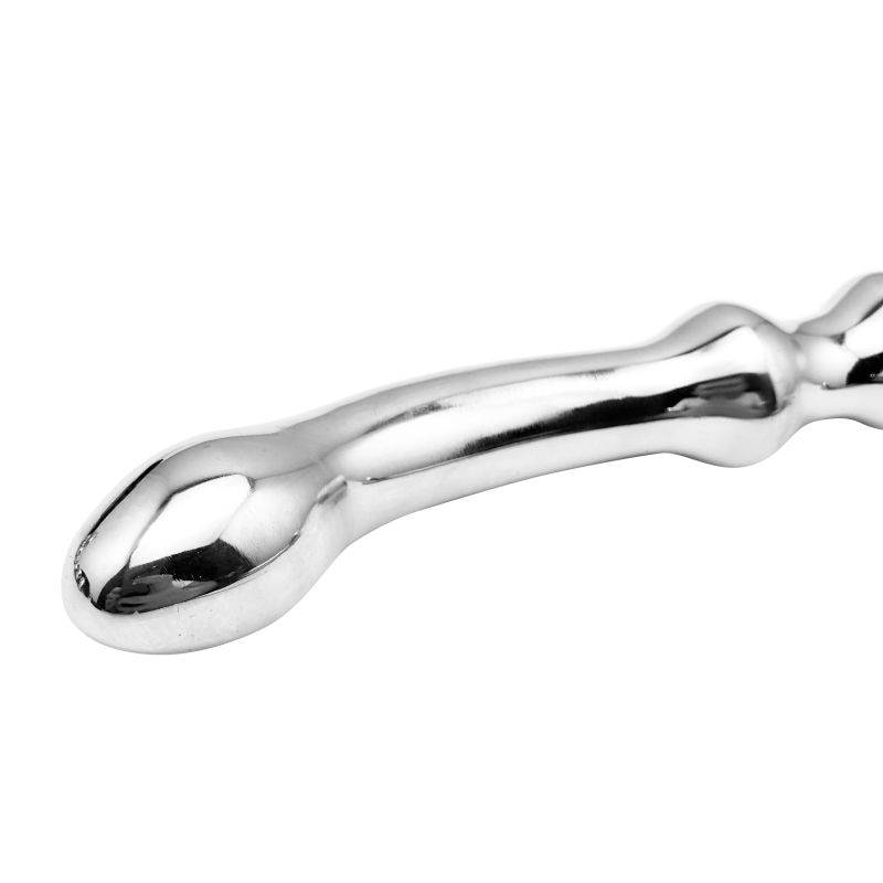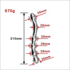 É em produto pesado, com 670G, e tem todas as características inerentes ao metal. Podendo ser frio ou aquecido ao toque, com aquele choque de diferenças de temperaturas para qualquer prática anal ou vaginal.