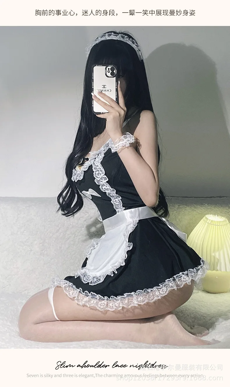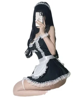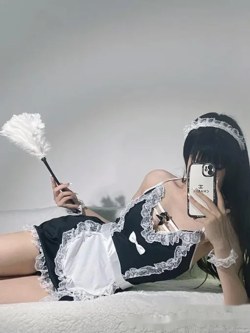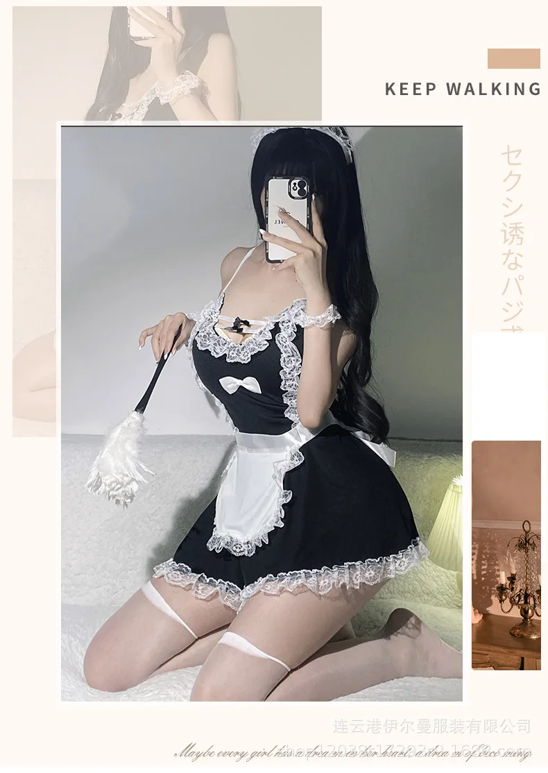 Feita com materiais de alta qualidade, a peça inclui detalhes delicados, como rendas, laços e um avental charmoso, que realçam suas curvas e aumentam o poder de atração.