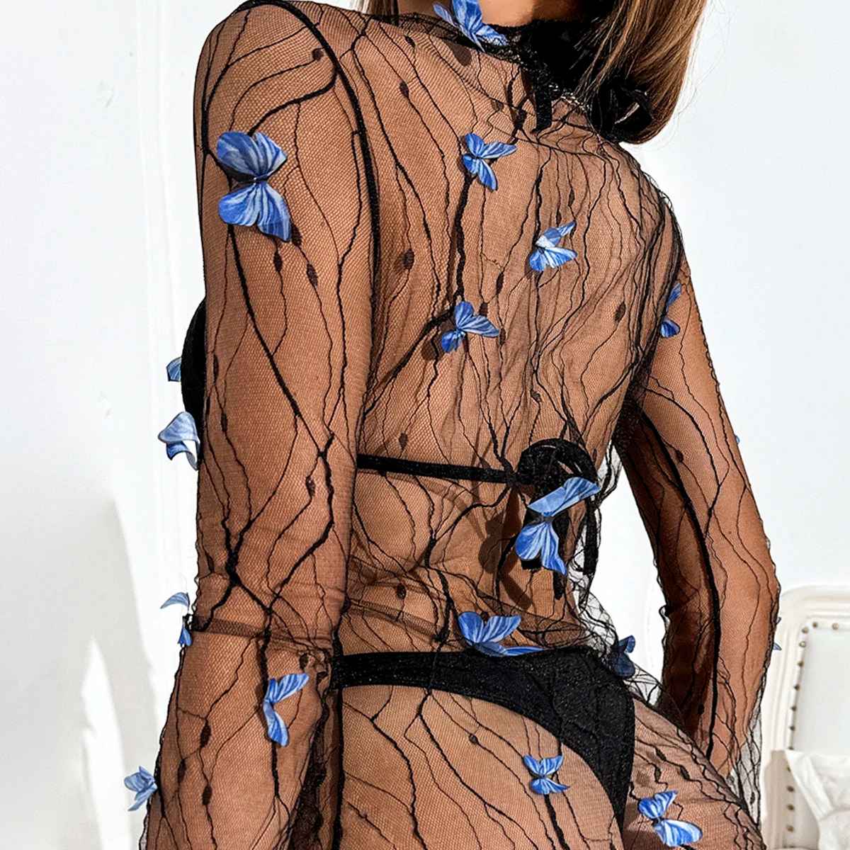 Liberte sua sensualidade com a fantasia borboleta azul da Ellolace, um conjunto ousado que mistura delicadeza e provocação em cada detalhe. A peça combina um vestido de malha transparente com estampa de borboleta e uma lingerie micro feminina, criando um visual envolvente e hipnotizante.