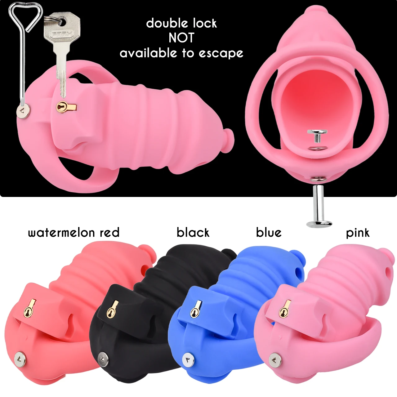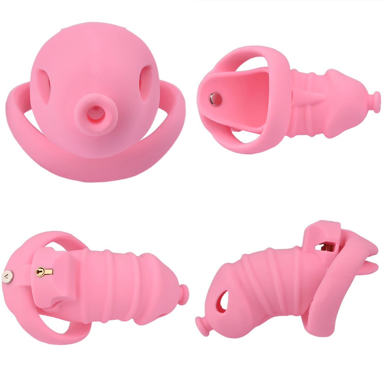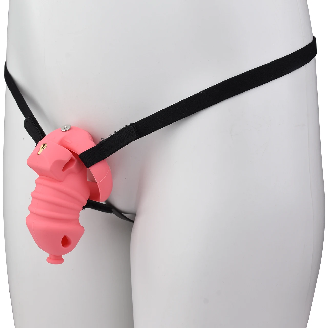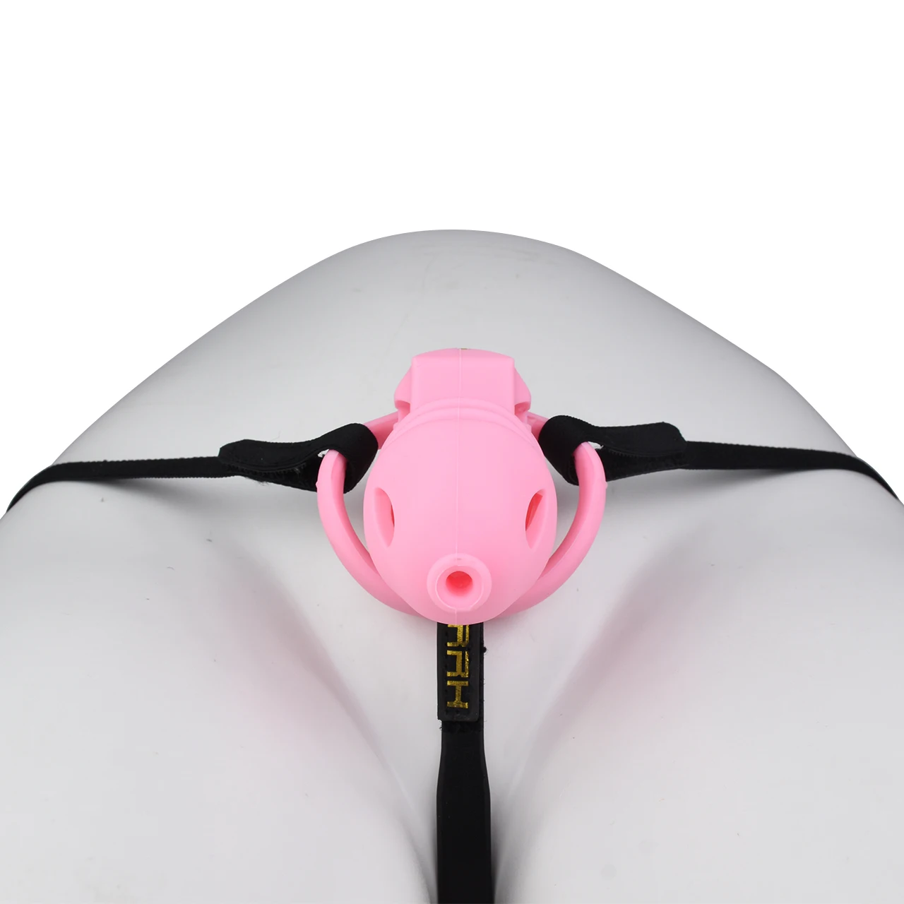 | Sex Products | Sissies Pink Soft Silicone Fish Male Penis Chastity Cage |
