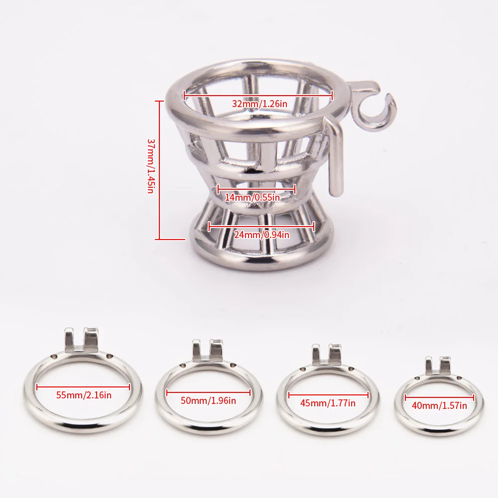 Gaiola Castidade Invertida Cesta de Peixe Cock Cage: Explore os limites do controle e submissão com esta peça única que combina funcionalidade e estética refinada. Feita para proporcionar uma experiência intensa e marcante, esta gaiola masculina é ideal para praticantes de BDSM que buscam elevar suas dinâmicas de poder e submissão.