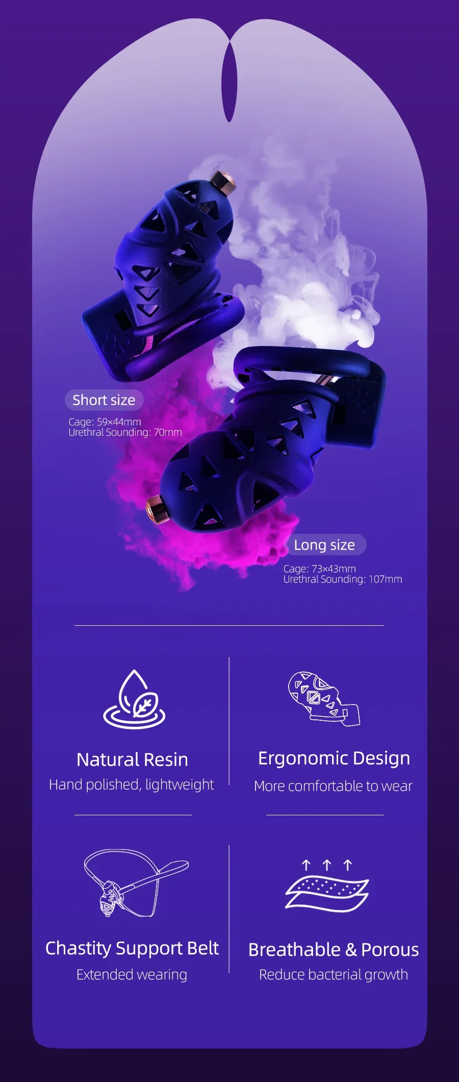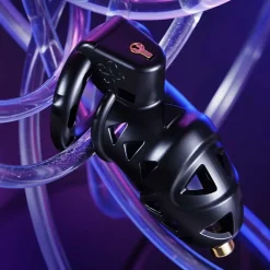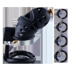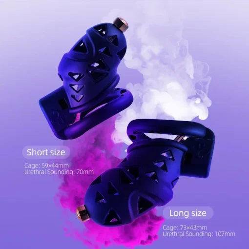 Com seu design ergonômico, ela oferece uma aparência e sensação incríveis graças aos designs de triângulos concêntricos em toda a sua superfície, que não só proporcionam um apelo visual único, mas também permitem ampla circulação de ar, ajudando a manter seu pênis fresco. Materiais de alta qualidade mantêm a gaiola firme, restritiva, mas confortável e leve, para que você não tenha problemas em usá-la o dia todo.