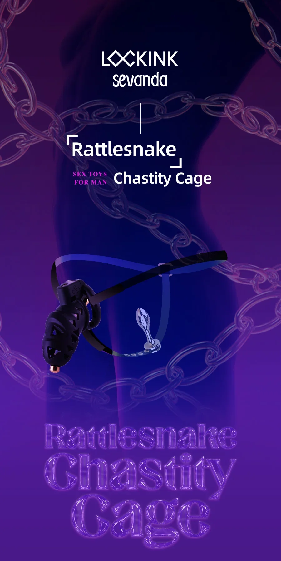 Gaiola de Castidade com Plugue Anal Sevanda Rattlesnake Chastity Cage: Uma das gaiolas de castidade mais restritivas que um escravo pode usar, repleta de recursos que tornam a permanência na castidade mais fácil do que nunca.