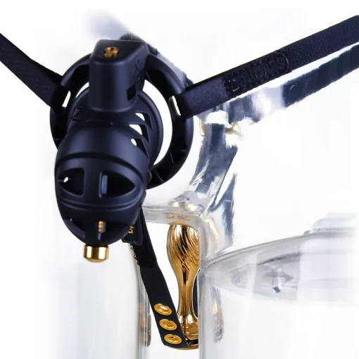 Além do dispositivo de castidade e das alças, você pode se sentir ainda mais humilhado ao tomar controle de todos os aspectos de seus genitais. Um plugue anal dourado de três polegadas é preso à alça traseira, restringindo o acesso ao seu ânus. Enquanto isso, o cateter de silicone incluído se conecta à parte frontal da gaiola e controla sua uretra. Não há realmente como escapar.