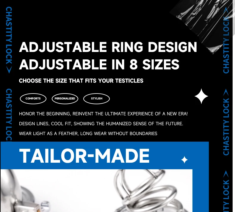 Seu design ajustável permite um encaixe personalizado, tornando-a ideal para diferentes tamanhos e garantindo segurança durante o uso. A estrutura ventilada favorece a higiene e o uso prolongado, enquanto o sistema de travamento seguro impede qualquer estimulação direta, intensificando a submissão e o controle.