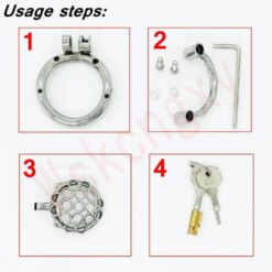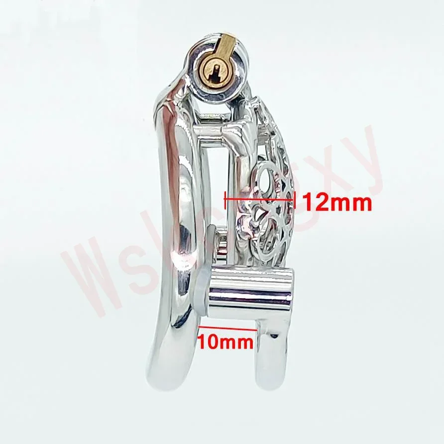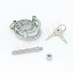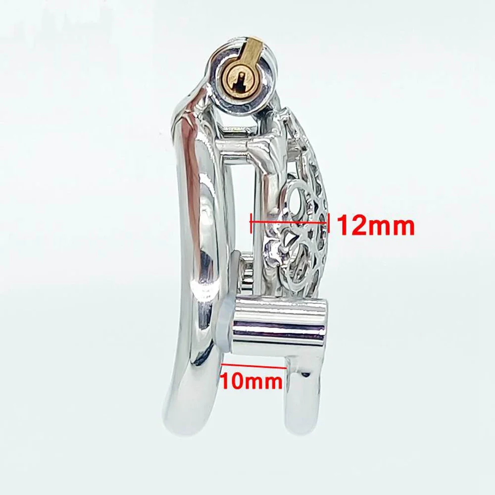 Assuma o controle total com esta gaiola de castidade masculina super pequena, feita em aço inoxidável durável e seguro. Com apenas 12 mm de comprimento, essa estrutura compacta restringe completamente o pênis, oferecendo uma experiência intensa de submissão.
