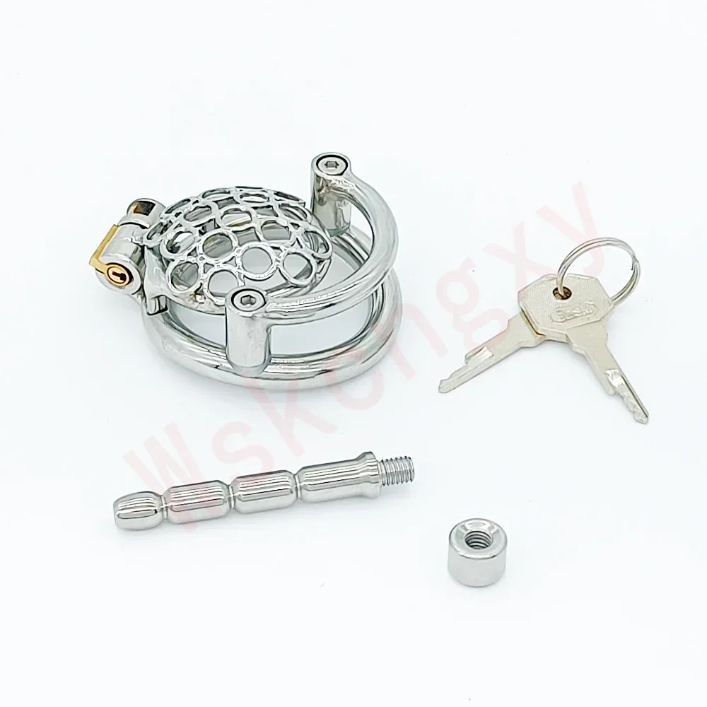 Gaiola de Castidade Masculina Super Pequena em Aço Inoxidável com Cateter Removível