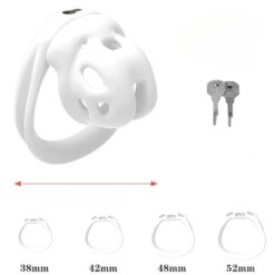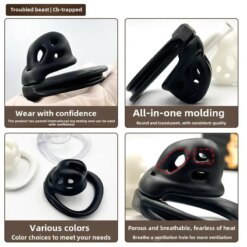 O design anatômico permite o uso prolongado, dificultando a retirada sem chave e impedindo a ereção completa. O tubo uretral removível adiciona um nível extra de controle e estimulação, intensificando a sensação de vulnerabilidade e entrega.