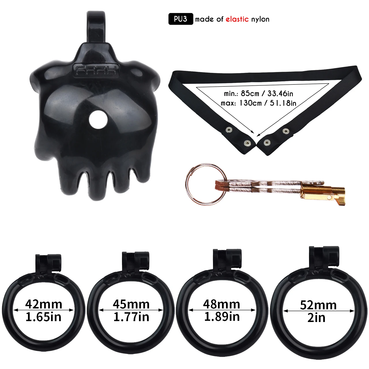 Gaiola de Castidade Pênis na Mão FRRK Penis In Hand Chastity Cage: uma peça única, feita para quem leva o jogo da dominação a um novo nível. Com design ousado que simula uma mão segurando o membro, ela une simbolismo e contenção em uma proposta visualmente provocante e cheia de poder.