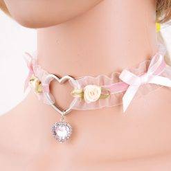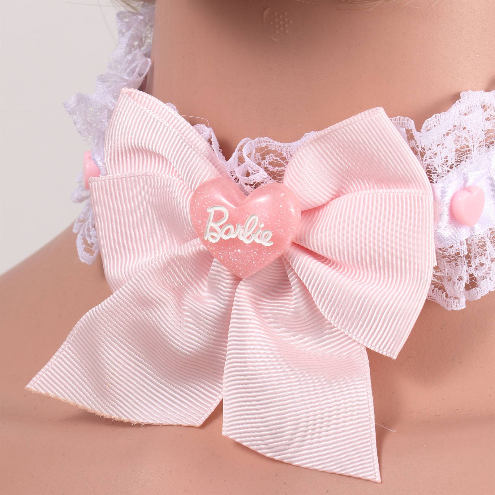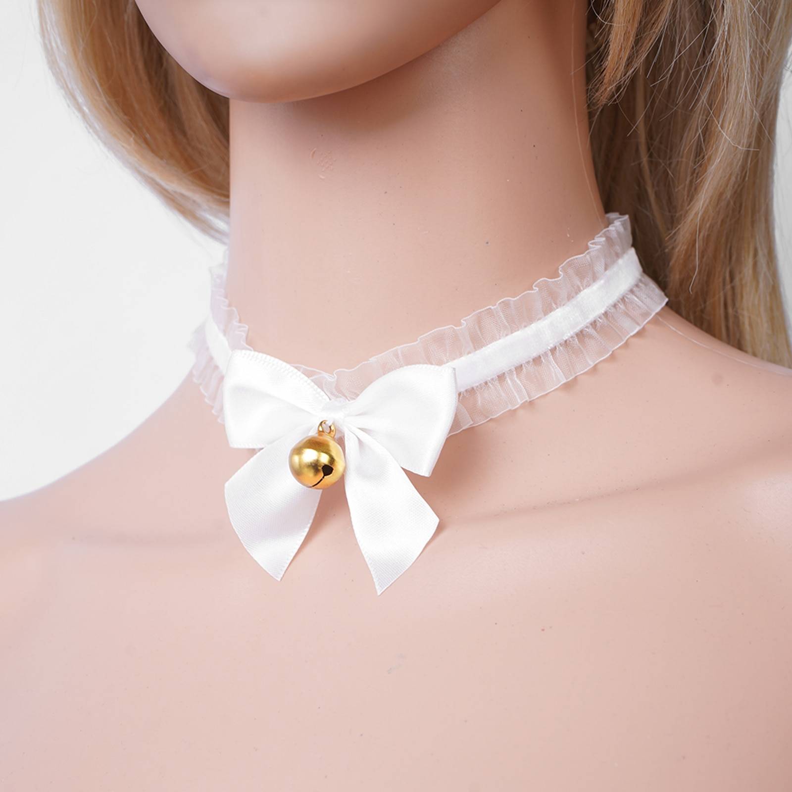 São colar e peça de beleza e suavidade, com fitas, pingente, pelúcia, renda, guizos, corrente e laços decorativos. 27 opções.