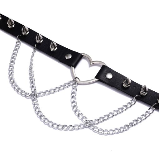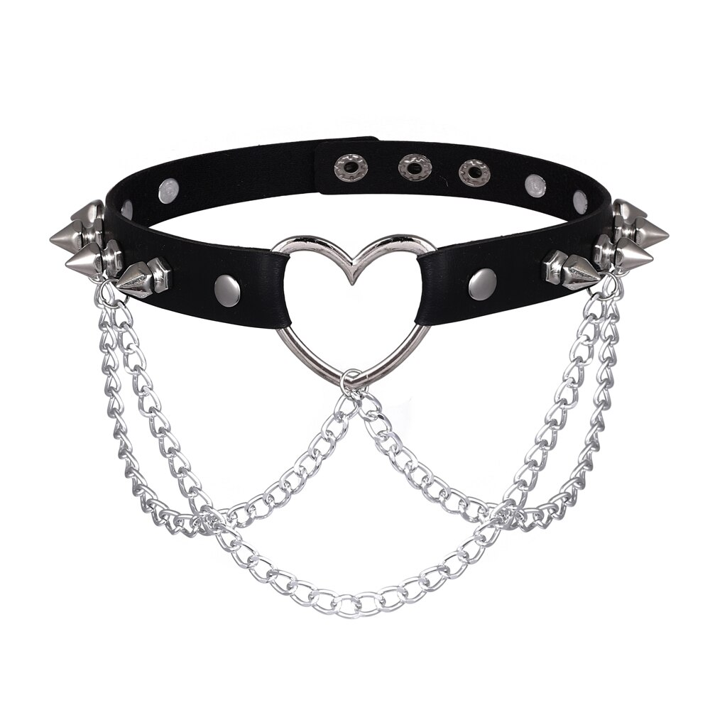 Gargantilha com corrente e tiras de couro sintético. Pingente de coração, várias cores.