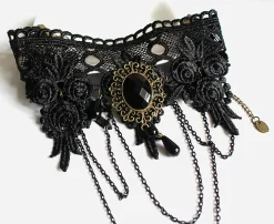 Gargantilha Pulseira Renda Preta Chocker Bracelet: Adicione um toque de elegância e mistério ao seu visual com esta deslumbrante Gargantilha e Pulseira de Renda Preta. Este conjunto combina a delicadeza da renda com o estilo gótico-chic, criando acessórios que são tanto sofisticados quanto ousados, perfeitos para ocasiões especiais ou para quem deseja expressar sua personalidade única.