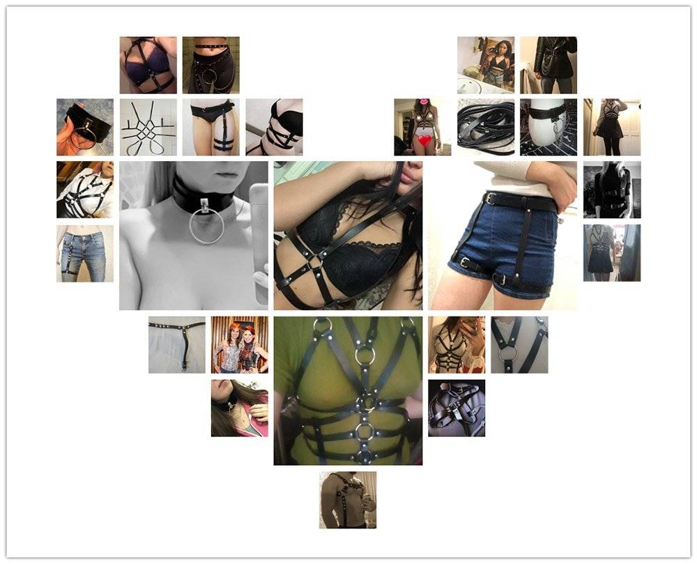 | leather body harness | gothic garter belt |