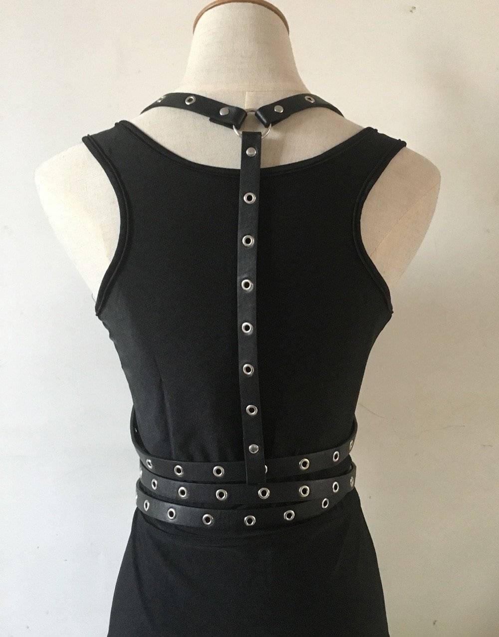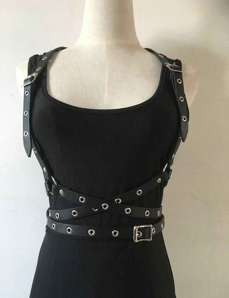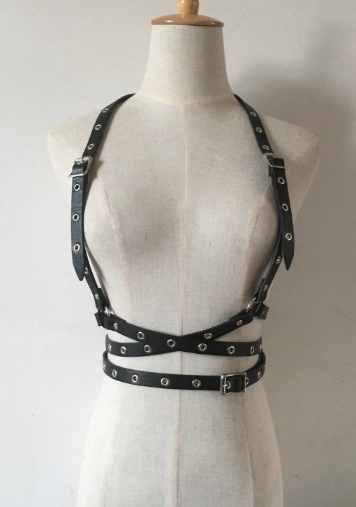 Harness Feminino Cinto de Couro e Suspensório Detalhado