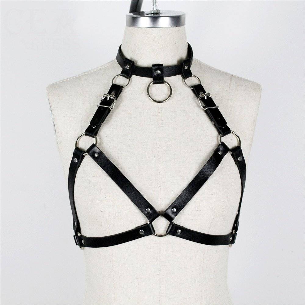 Harness Sutiã de Couro Sexy Punk com Fivelas Vestuário