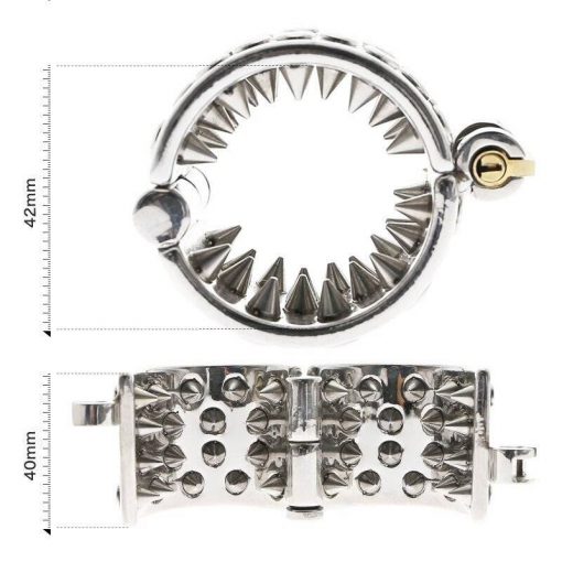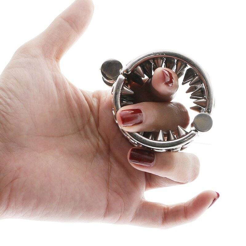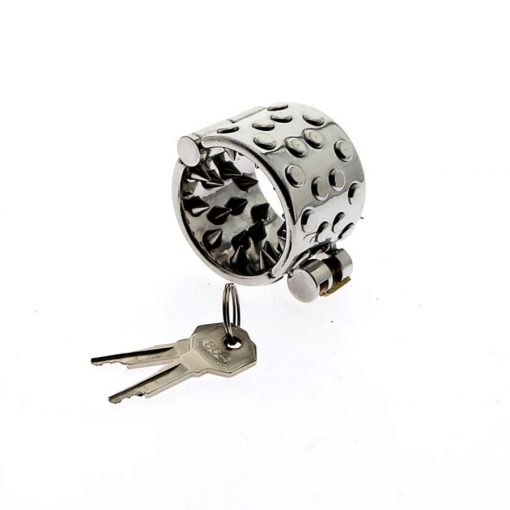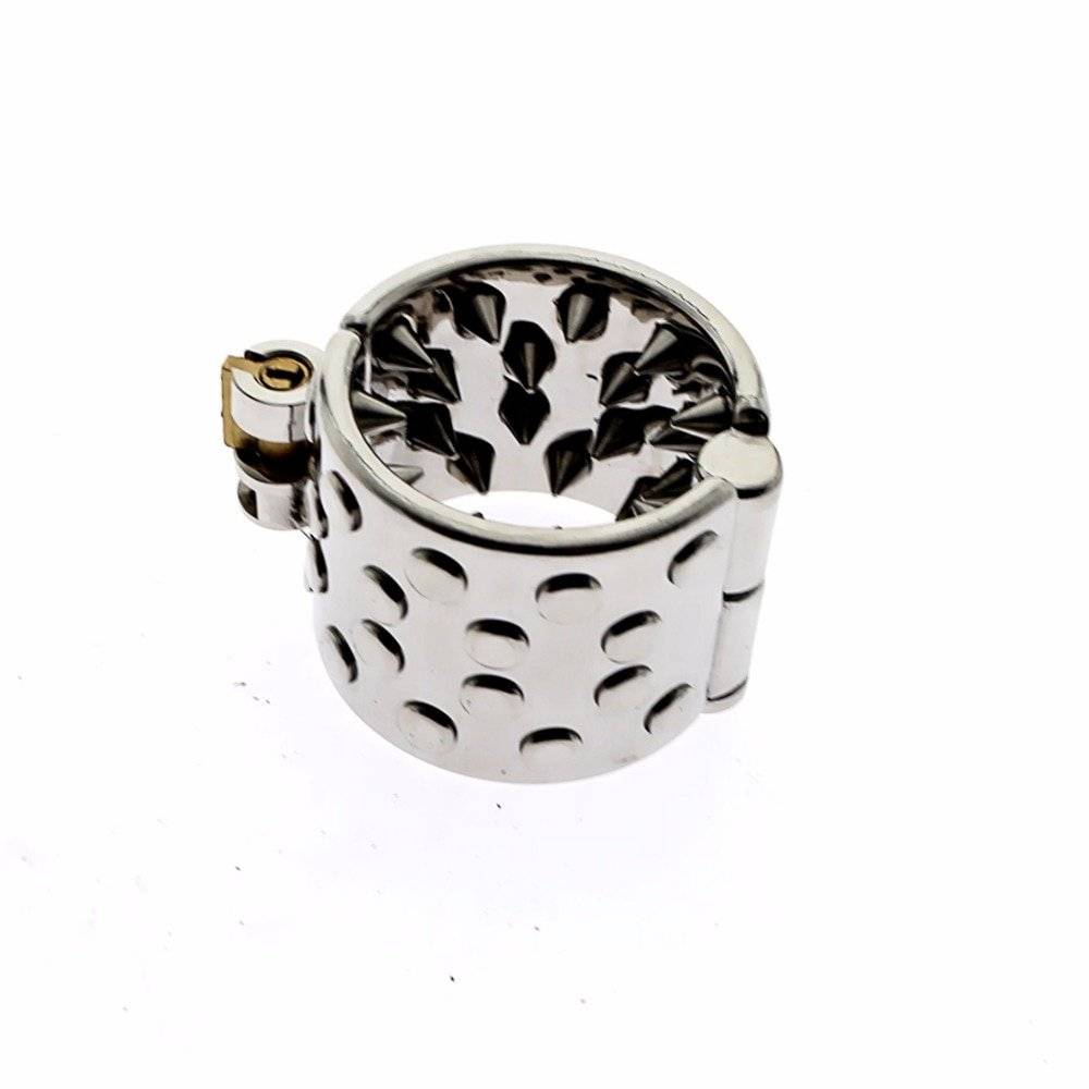 Este anel de com espinhos é uma manilha de aço com pontas arredondadas para dentro para a negação sexual erótica! 4 fileiras de dentes de prazer.