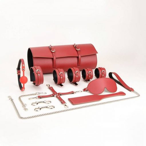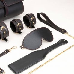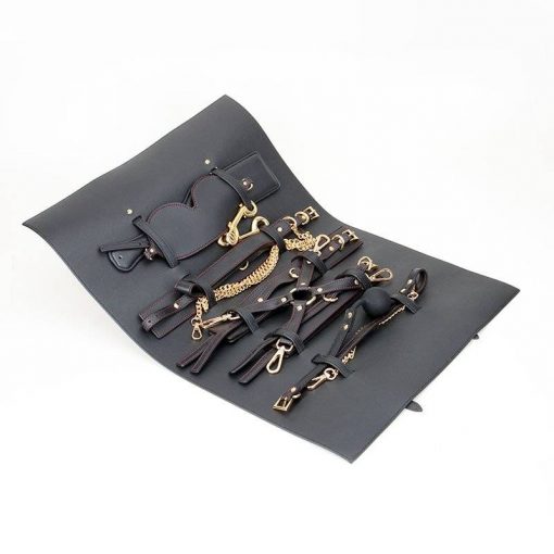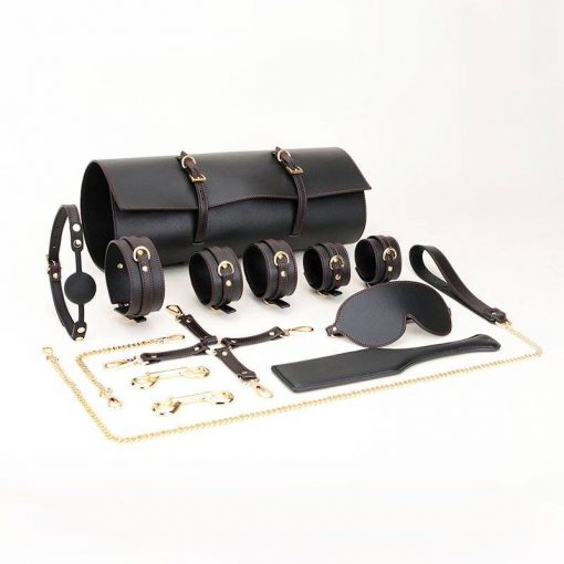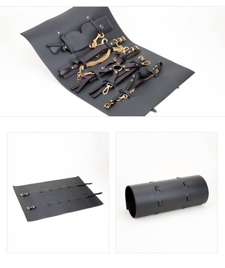 Todas as ferramentas necessárias para uma sessão BDSM completa e de qualidade. São 13 itens que ficam bem compactos dentro do estojo. Duas cintas de couro grossas garantem que tudo permaneça guardado no devido lugar.