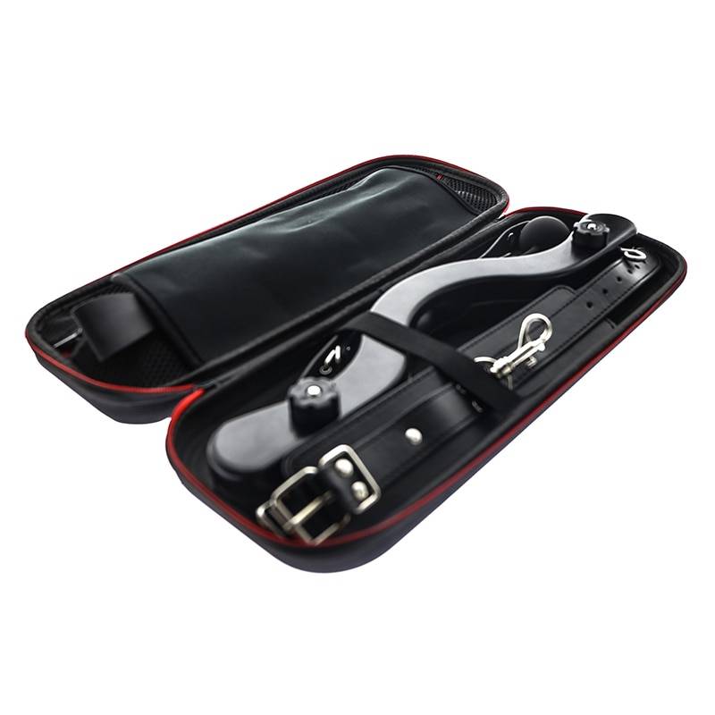 - Humbler resistente com punhos de tornozelo destacáveis, mordaça de bola, chicote, slapper, roda de rolo e tudo em um saco de transporte portátil de luxo!