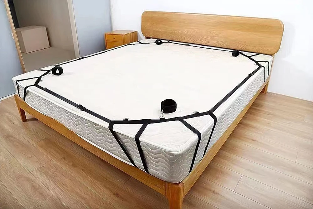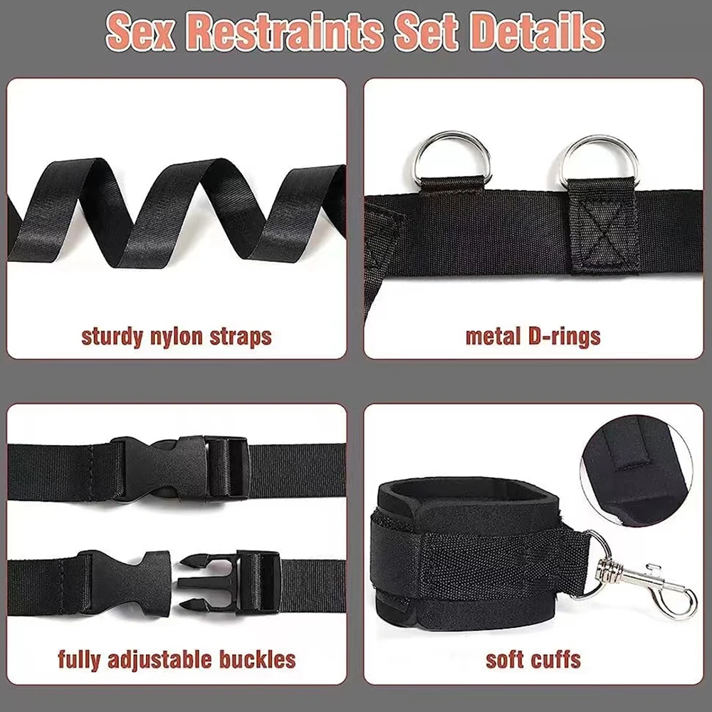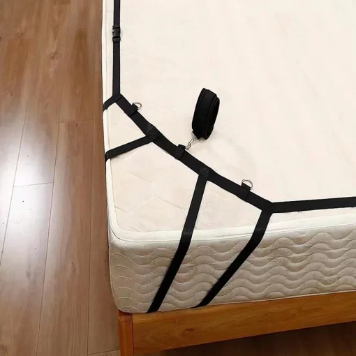 Kit Bondage Alças de Cama BDSM Kit with Handcuffs Bed Straps: transforma qualquer cama comum em um cenário de pura submissão e prazer. Com tiras ajustáveis e resistentes, o conjunto permite prender pulsos e tornozelos de forma confortável, mantendo o parceiro ou parceira na posição ideal para explorar limites, sensações e fantasias.