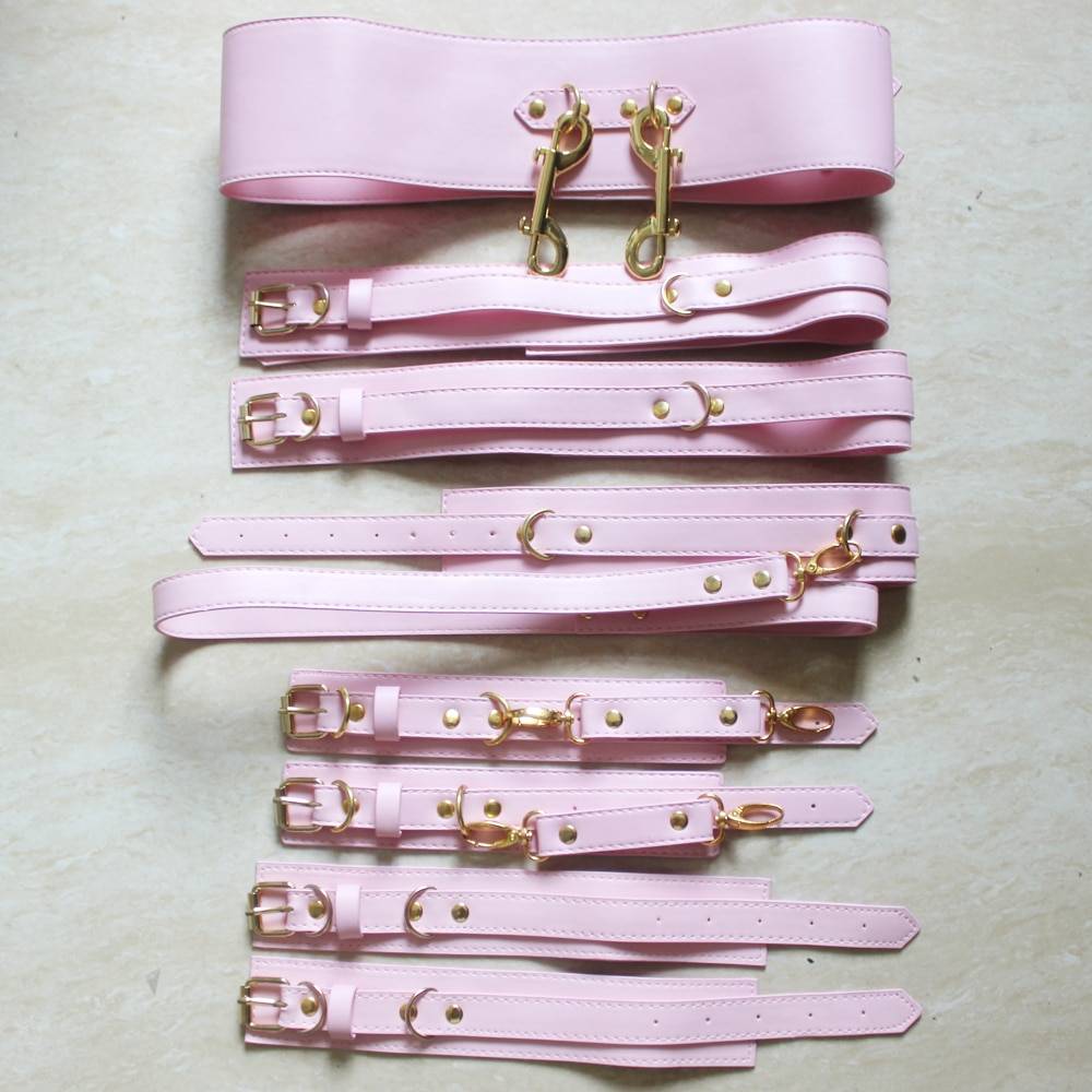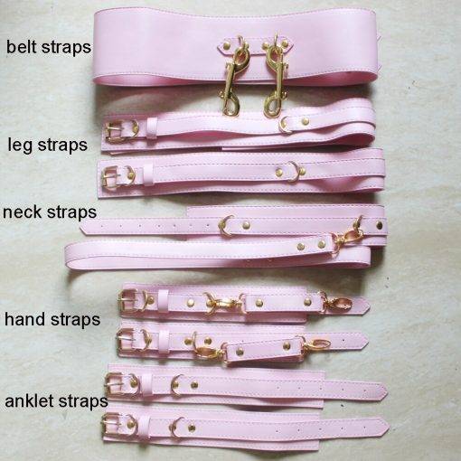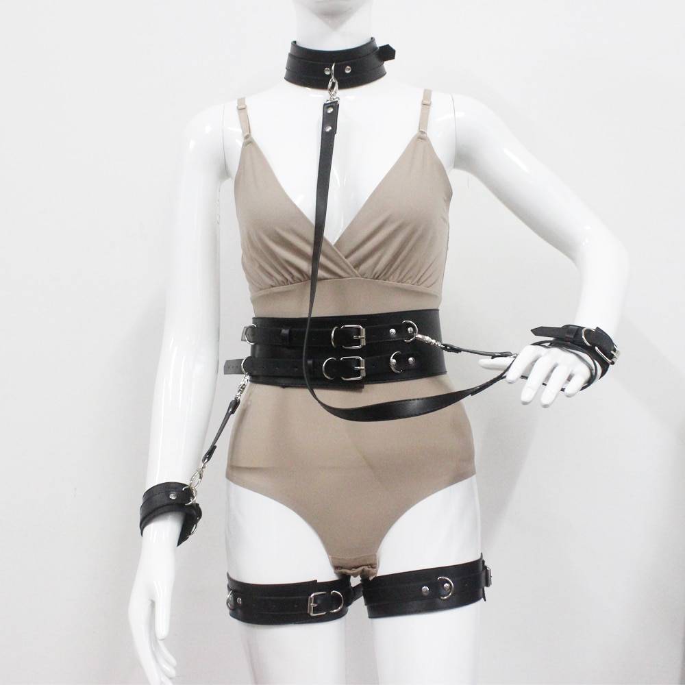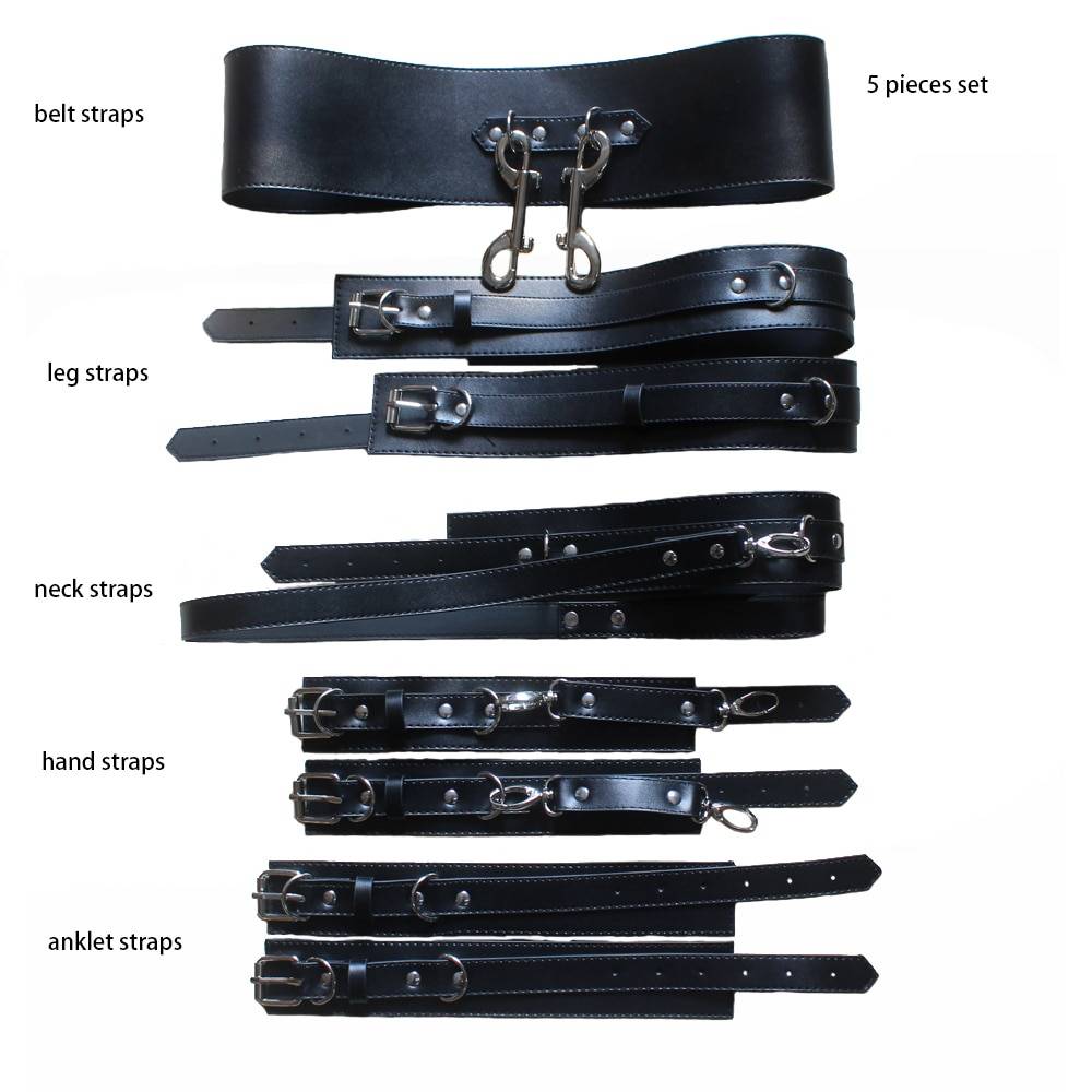 5 Peças no conjunto (1 cinto, 1 coleira, 2 correias de perna, 2 correias de mão, 2 tornozeleiras)