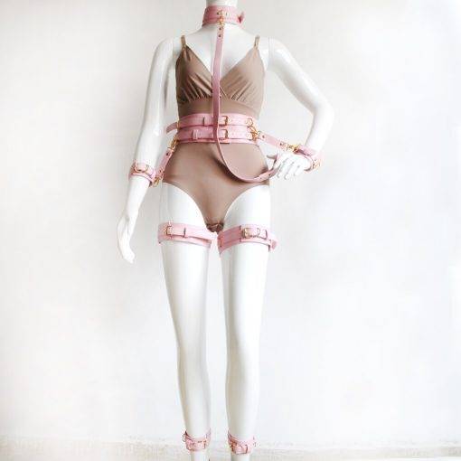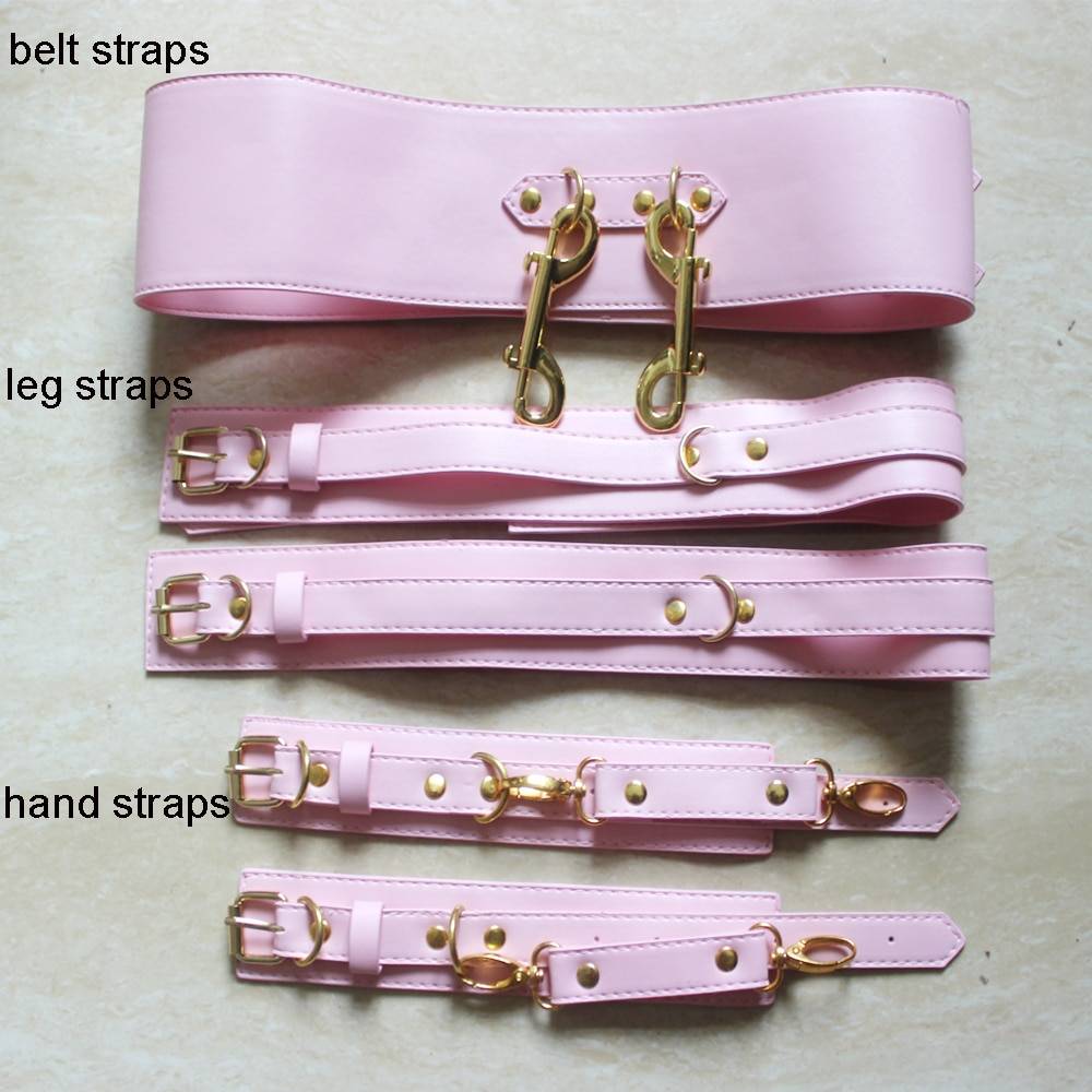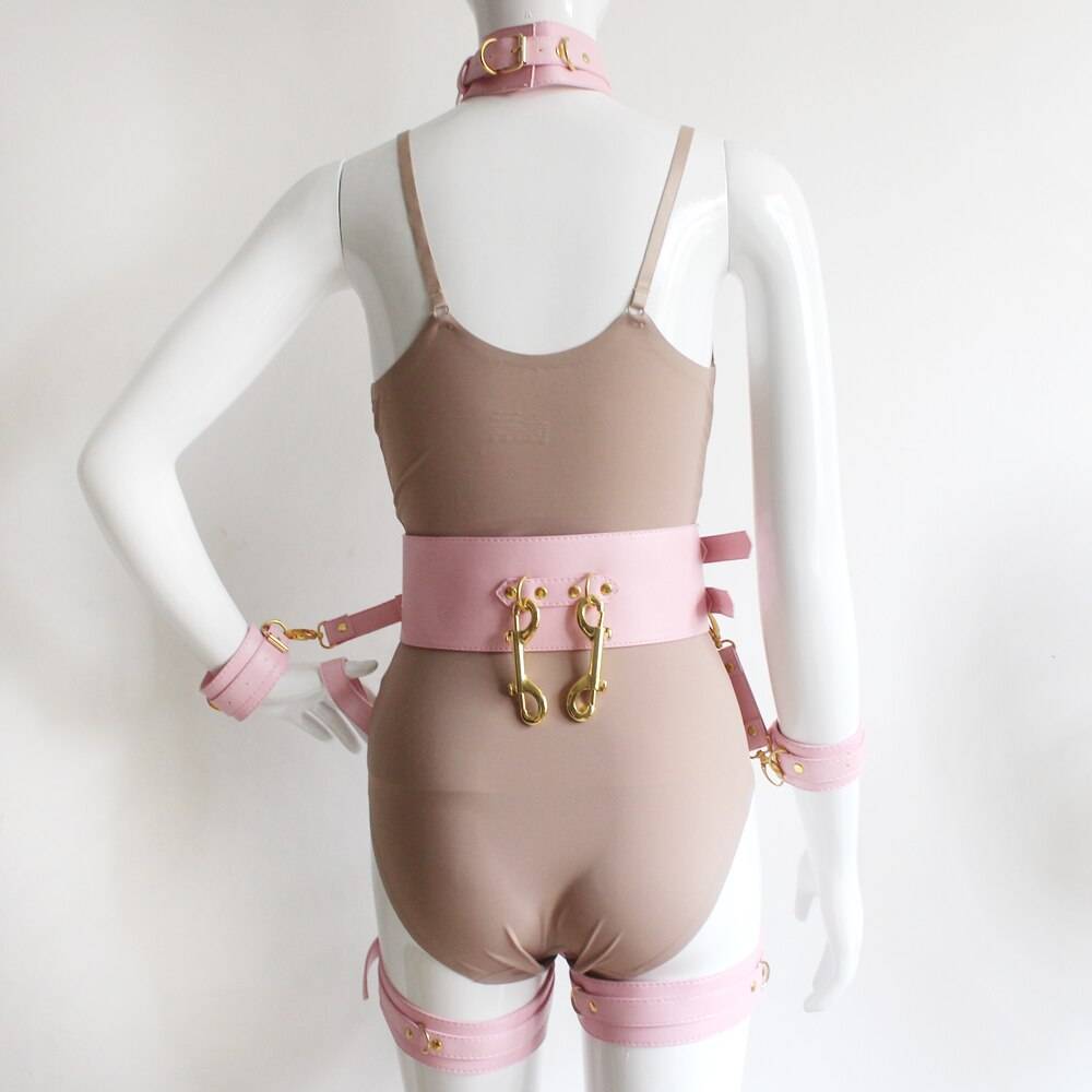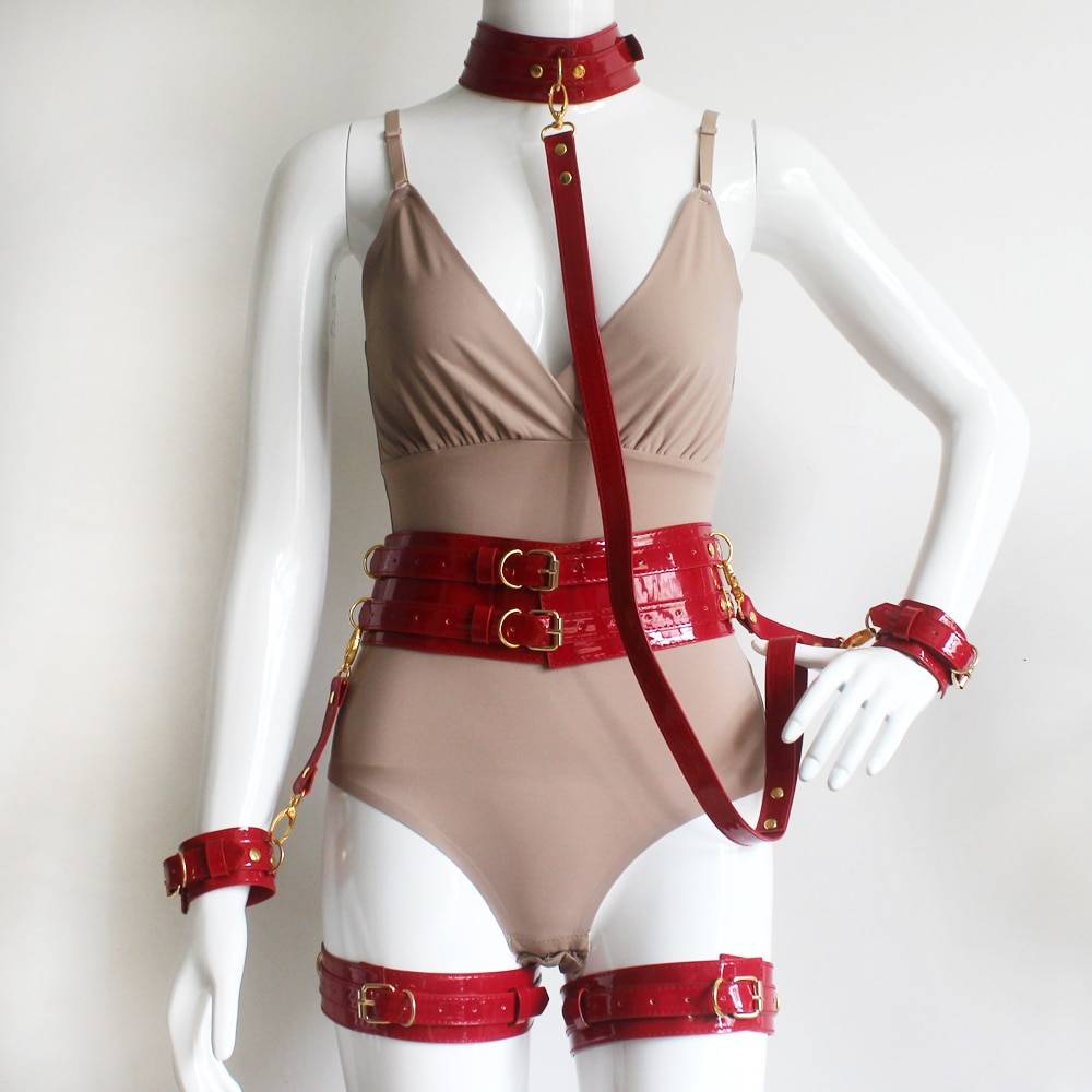 5 Peças no conjunto (1 cinto, 1 coleira, 2 correias de perna, 2 correias de mão, 2 tornozeleiras)