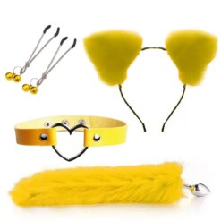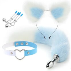 Items include: fox tail*1 cat ears*1 necklace*1 nipple clip*1 total 4pcs