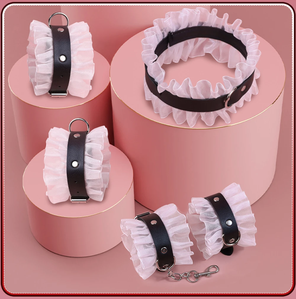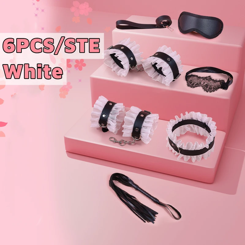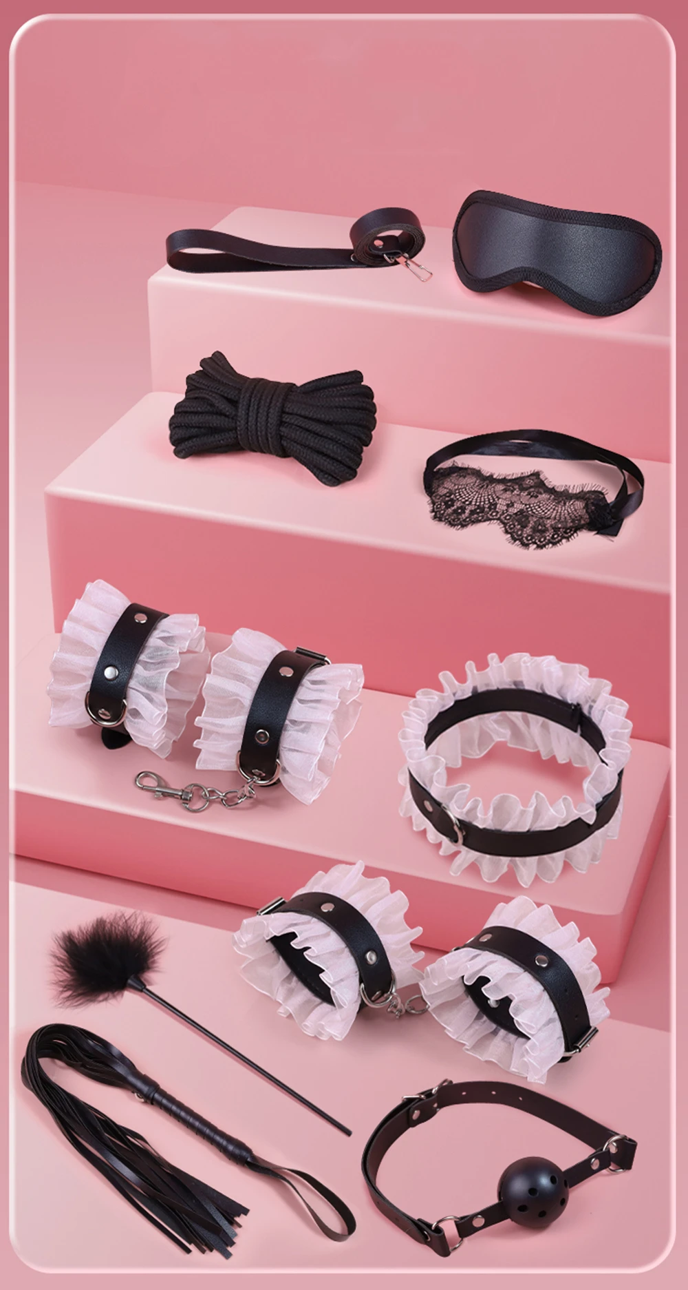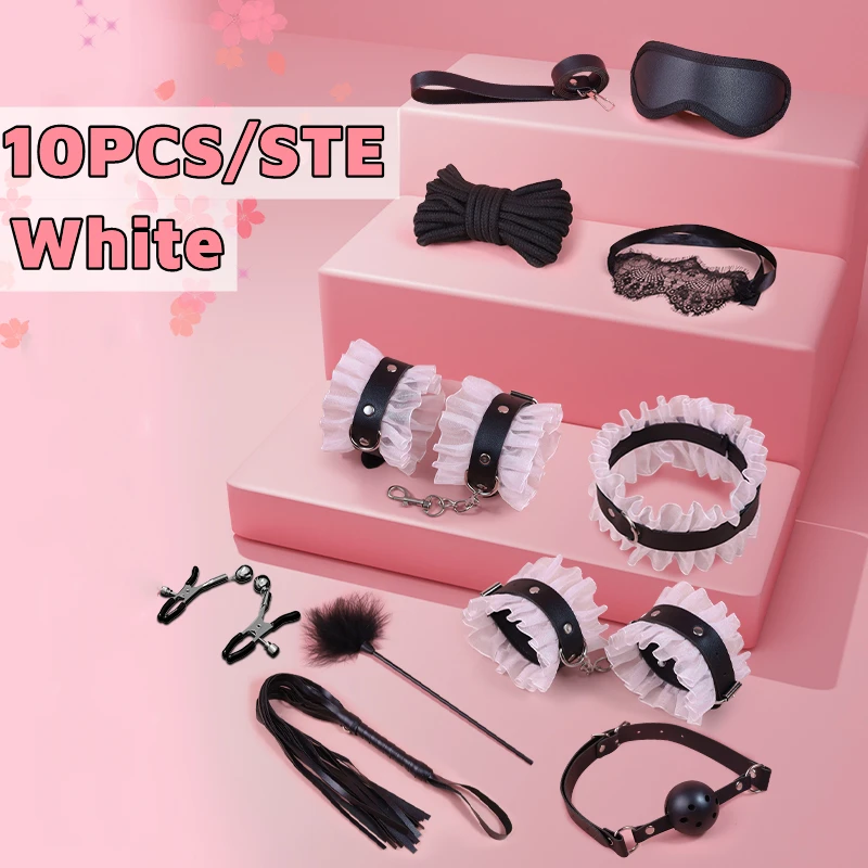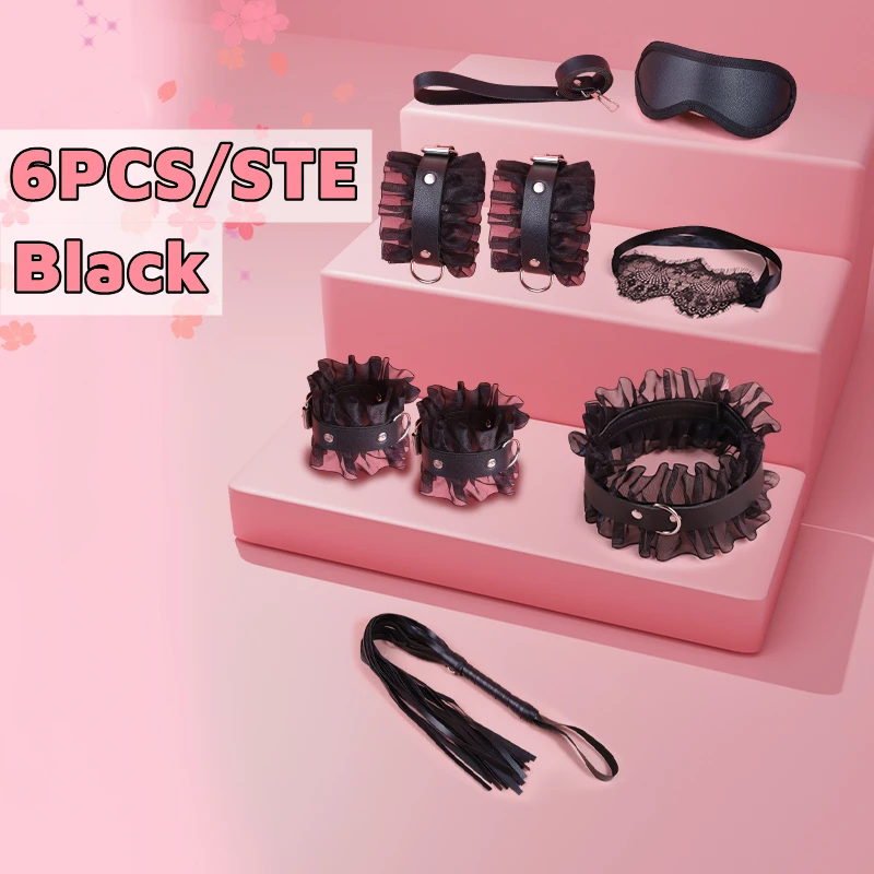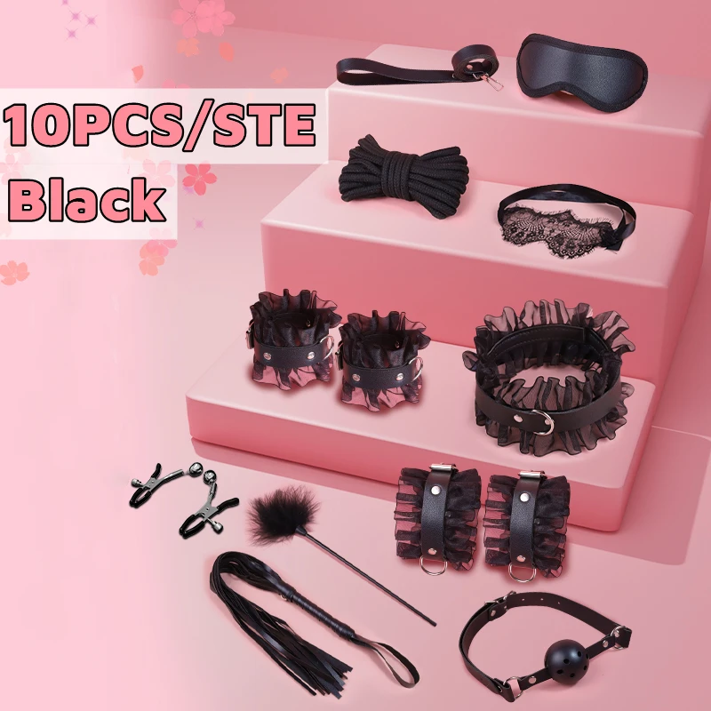 6-10PCS Lace & Leather BDSM Bondage Sets Restraints Adult Sex Toys with Handcuff Whip Gag Nipple Clamp for Women Couple Foreplay