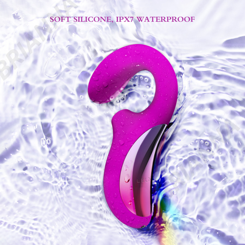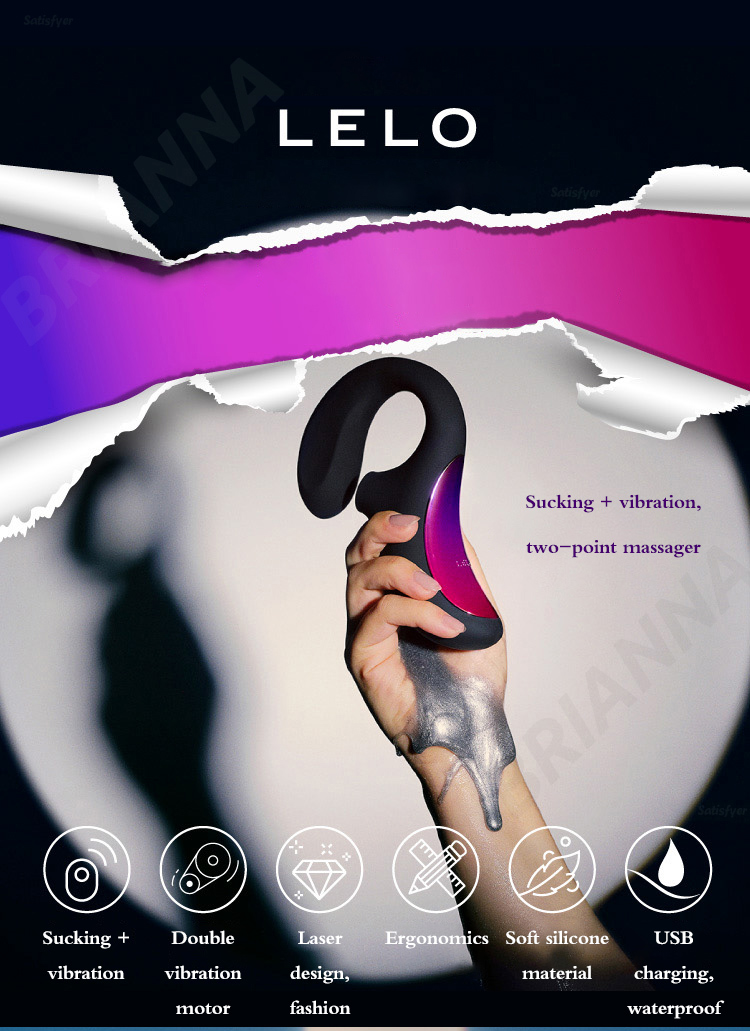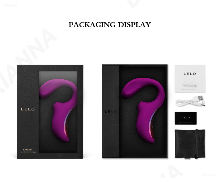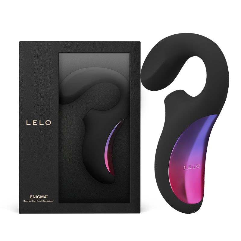 Vibrador Lelo Enigma com duas pontas fálicas e dois motores. Vibração por sistema de sucção.