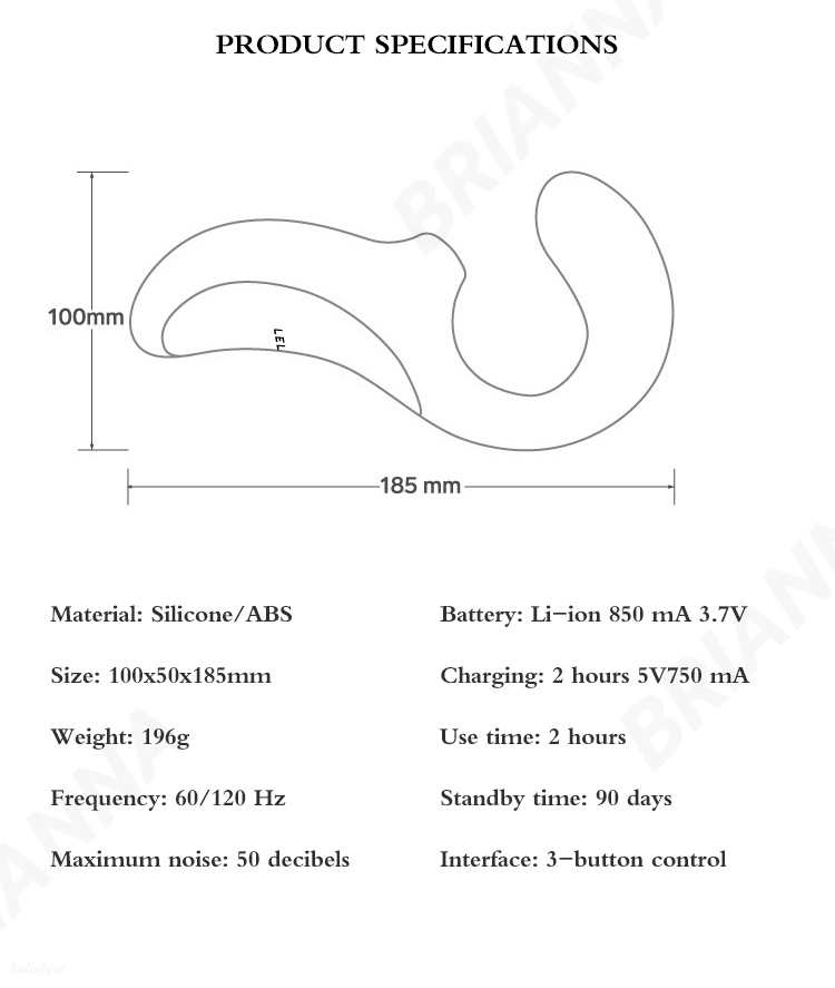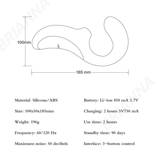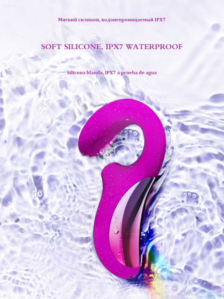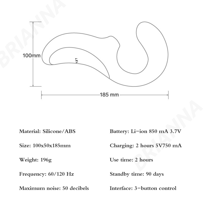 Feito em silicone macio e plástico ABS e pode ser submerso em líquidos. Suporta profundidades de até 1 metros devida a grande resistência IPx7 à água. Pode ser utilizado com lubrificantes corporais.