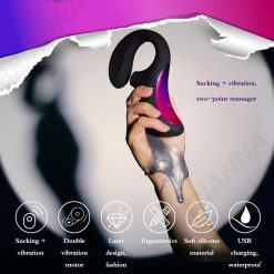 Um vibrador gracioso e potente, com funcionalidades diversificadas. O produto tem a arte de vibradores do tipo coelho e inclui dois motores vibradores para massagear com qualidade o ponto G e clitóris. Ainda há a liberdade de experimentar outro canal penetrante. Seu ponto diferencial é a ventosa para sucção do clitóris. Aproveite este formato curvo para pegar de jeito seu ponto g, enquanto você goza pelo clitóris também.