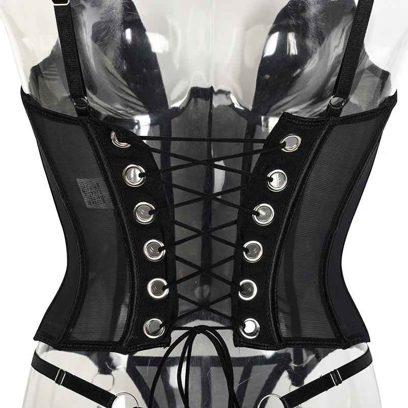Lingerie 3 Peças com Espartilho Ellolace – Fantasia Sexy sem Costas com Renda Preta