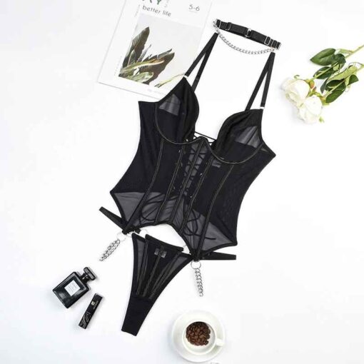 Além disso, o modelo é versátil: perfeito para noites românticas, ocasiões exóticas ou simplesmente para se sentir poderosa. Seu estilo marcante une transparência, amarrações ajustáveis e um toque provocante na medida certa.