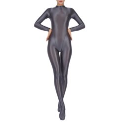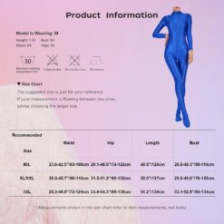 Este macacão feminino brilhante de corpo inteiro é a peça perfeita para quem deseja unir estilo marcante, sensualidade e conforto. Feito com tecido ajustado e de acabamento luminoso, ele envolve o corpo com uma modelagem colante que valoriza a silhueta sem limitar os movimentos. O design com gola alta (mock neck), mangas longas e pé fechado traz um toque sofisticado e futurista, ideal para composições ousadas no clubwear, performances, eventos temáticos ou até mesmo ensaios fotográficos.