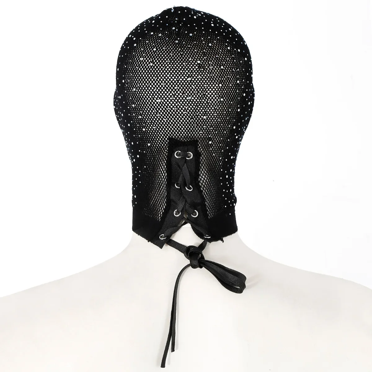 Máscara Balaclava Com Strass Rhinestone Head Hood: Adicione um toque de glamour e mistério aos seus momentos especiais com esta peça que é a combinação perfeita de elegância e sensualidade, ideal para quem deseja explorar o universo do cosplay, roleplay e jogos adultos.