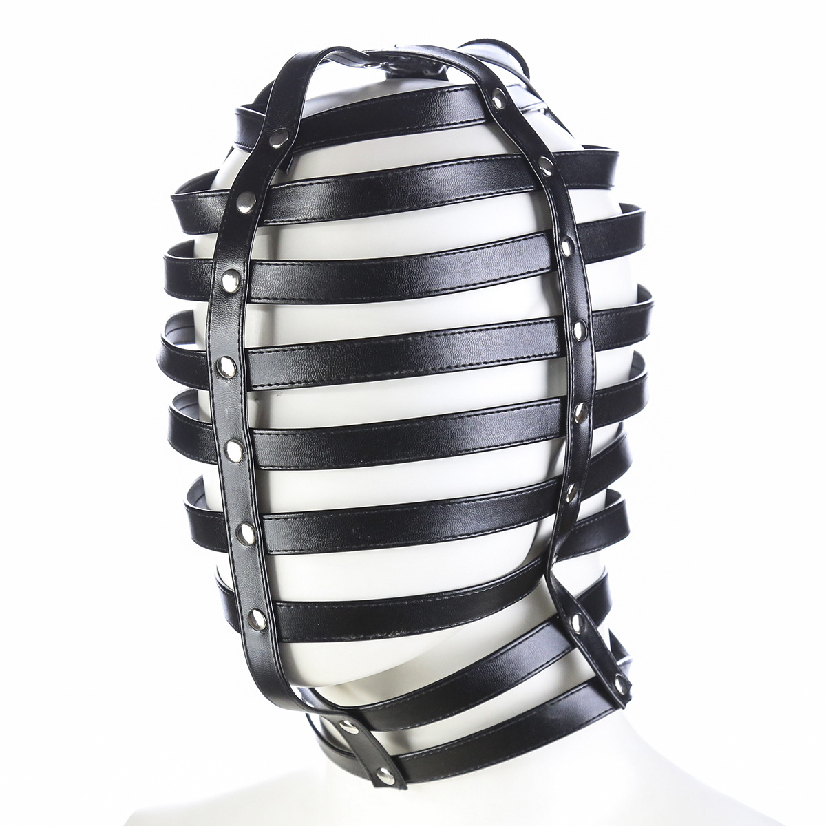 Máscaras de couro sintético em tiras. Fetiches BDSM ou fantasias.