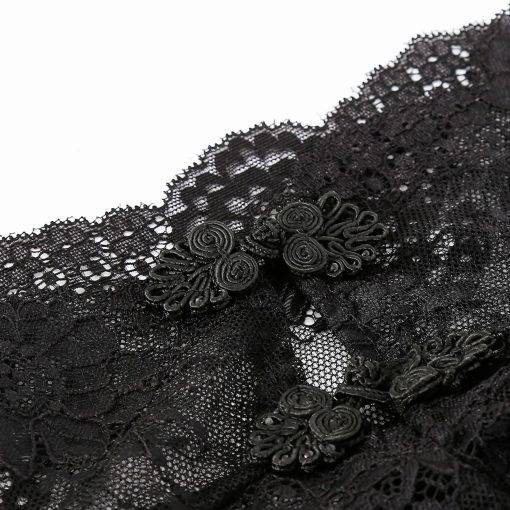 Excelente costura, design de renda floral allover, bainha com borda em arco. Estilo transparente.