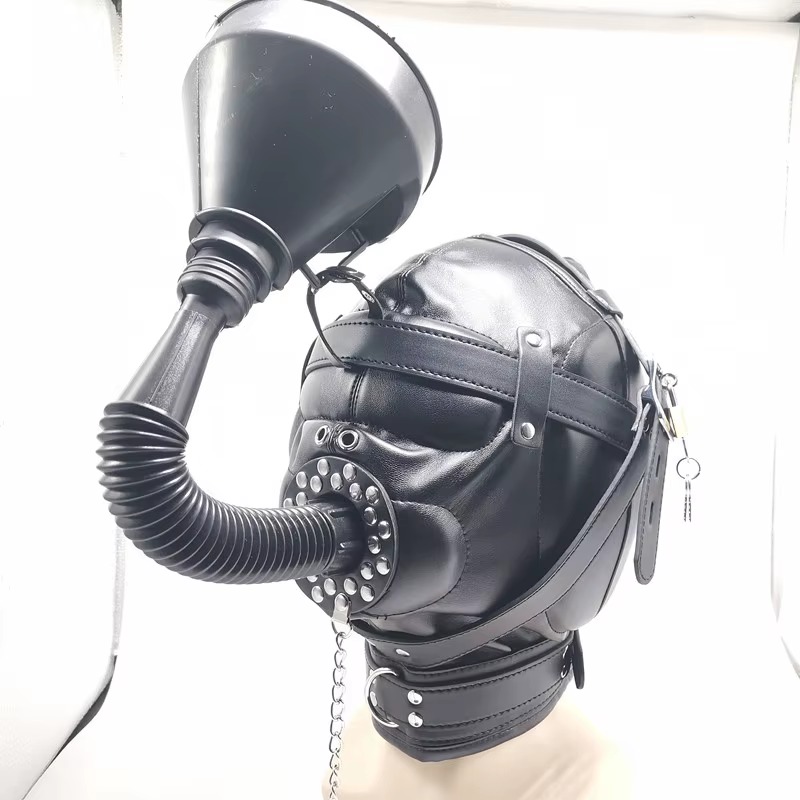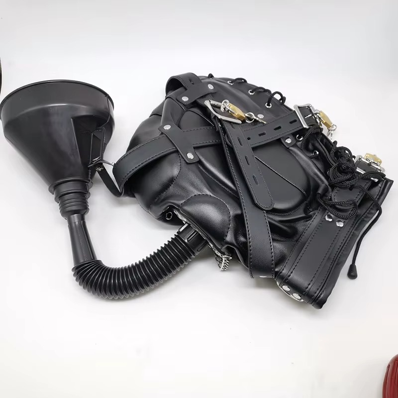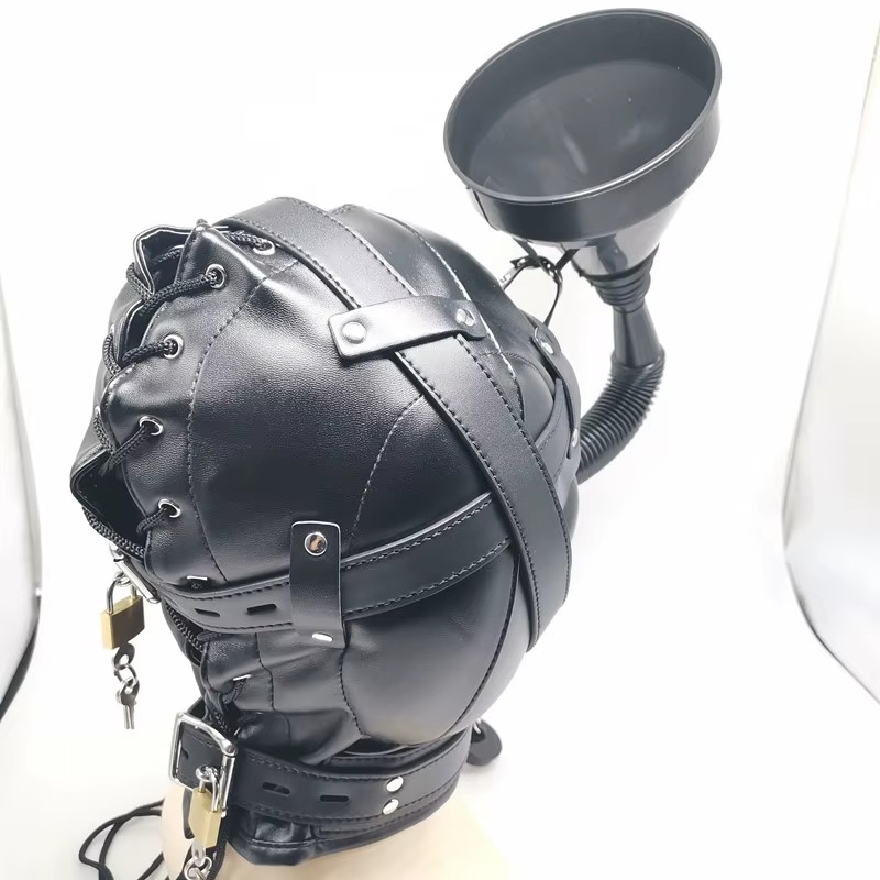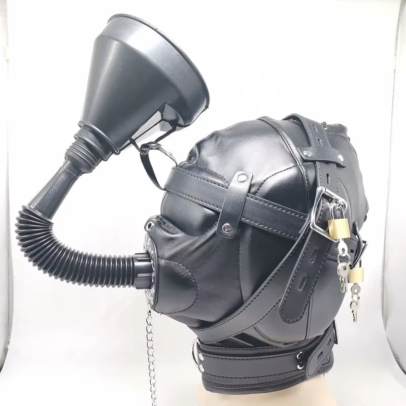 - Funil acoplado a máscara para você preencher com o que bem entender e fazer seu escravo(a) engolir tudo sem poder reclamar, sinceramente não precisamos saber o conteúdo, use a imaginação e divirta-se