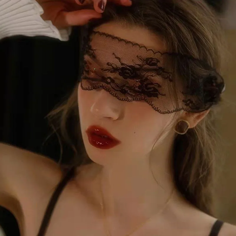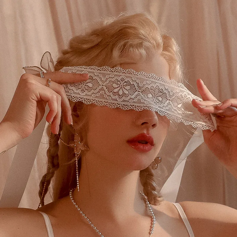 Feita em delicada renda, esta venda proporciona um toque suave e confortável ao rosto, bloqueando parcialmente a visão e intensificando todos os outros sentidos.