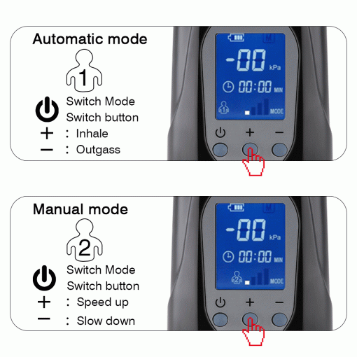 Para iniciantes, é importante iniciar este processo lentamente para evitar desconforto. Lembre-se de pressionar a válvula de liberação de segurança se o vácuo se tornar doloroso.