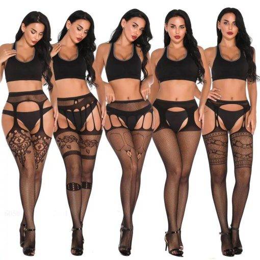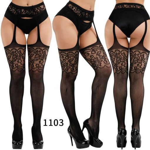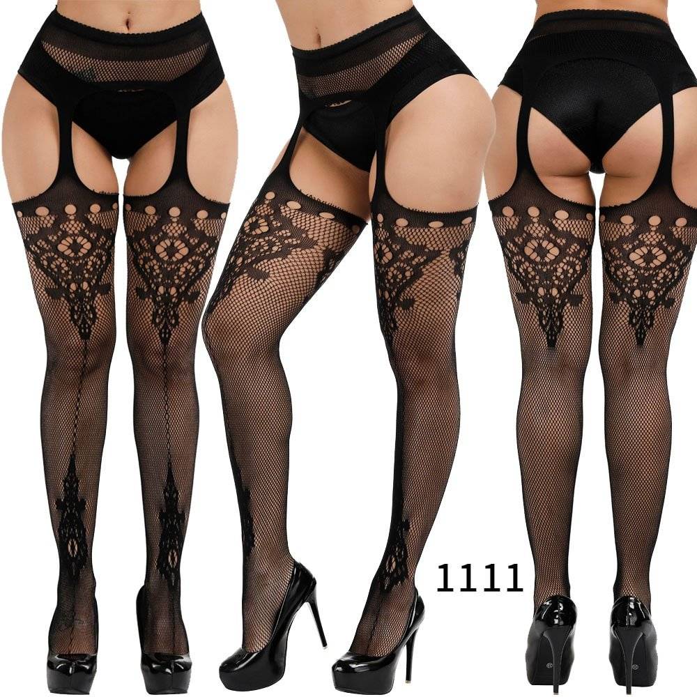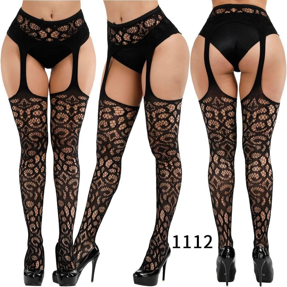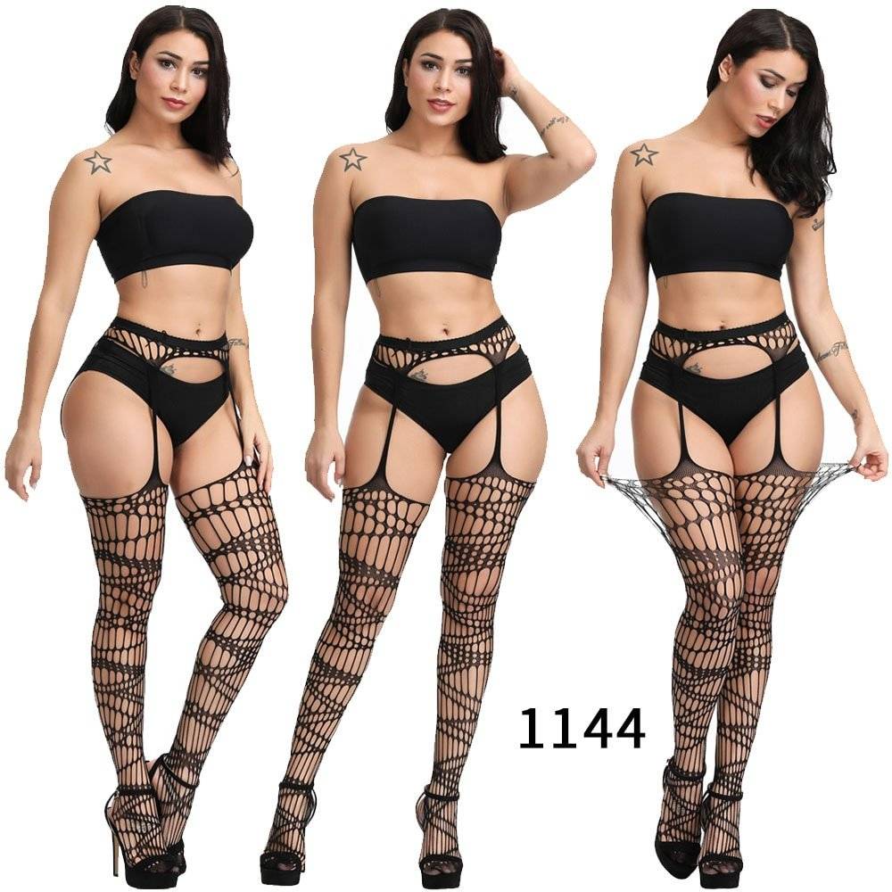 Meia Calça de Nylon com Cinta Liga Virilha Aberta Sexy Lingerie