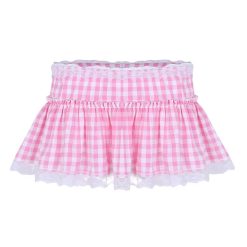 Mini Saia Plissada com Bainha de Renda School Girl Short Skirt