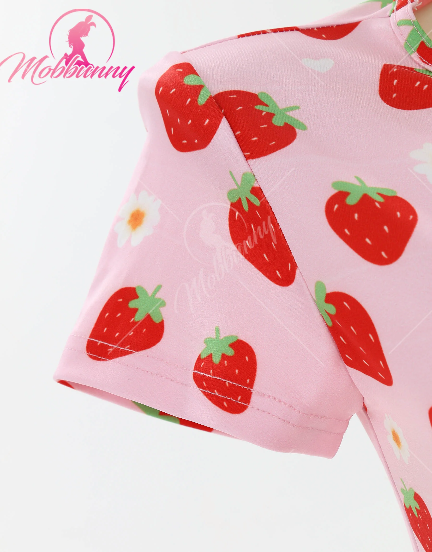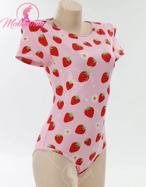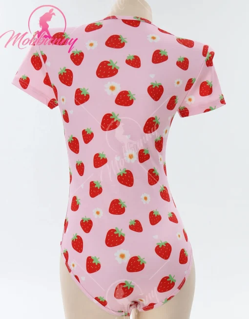 Mobbunny Macacão Pijama Morango Sexy Romper Strawberry: Adicione um toque de diversão e sensualidade às suas noites com esta peça. Com um design fofo e irresistível, este romper combina o charme dos detalhes em estampa de morango com um corte ousado que valoriza suas curvas.