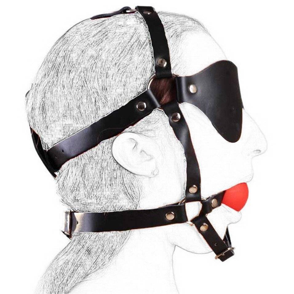 Mordaça Ball Gag de Cintas de Couro Arnês Com Venda BDSM